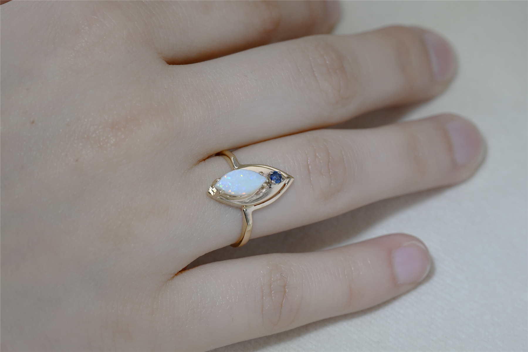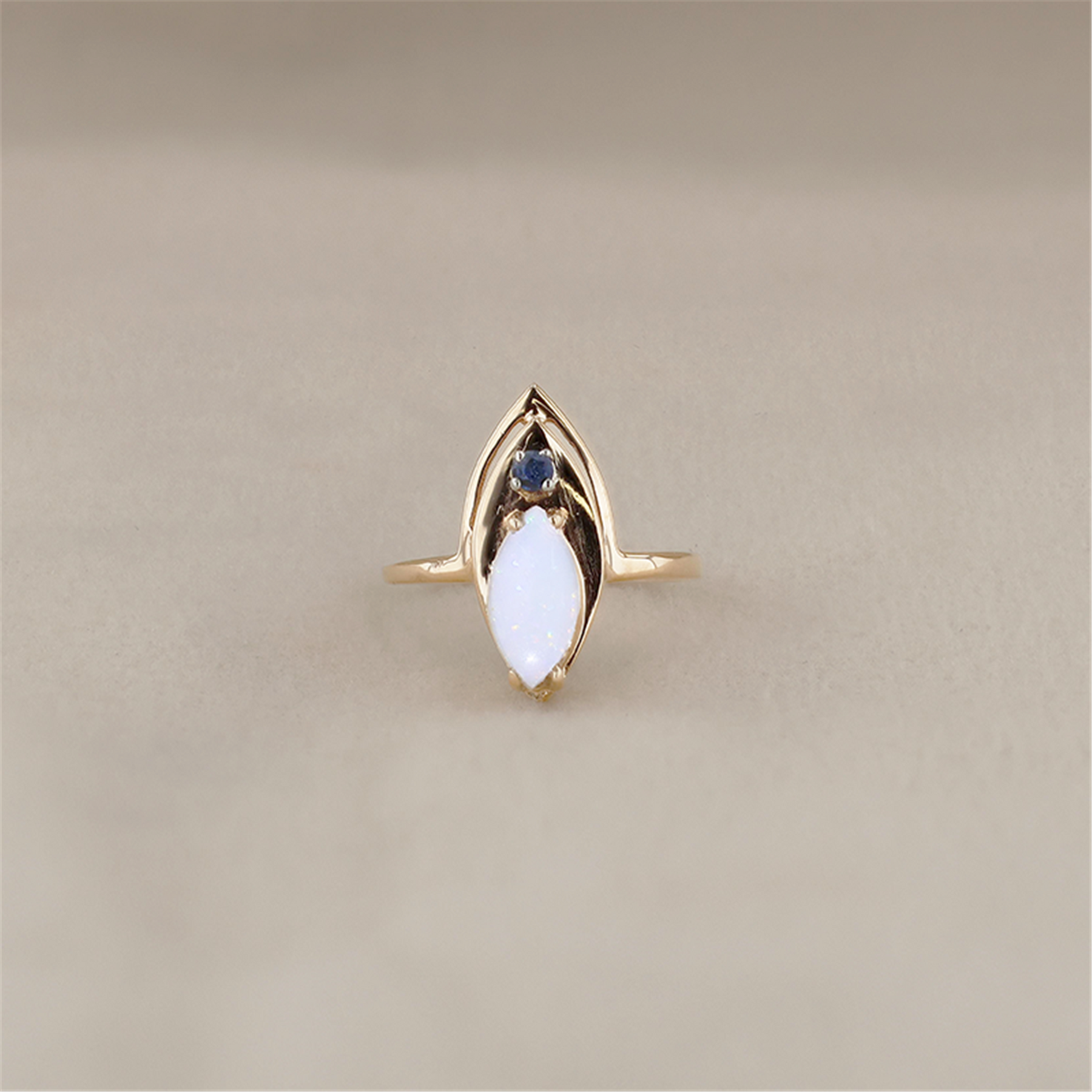 10K Yellow Gold Opal Blue Sapphire Estate Ring