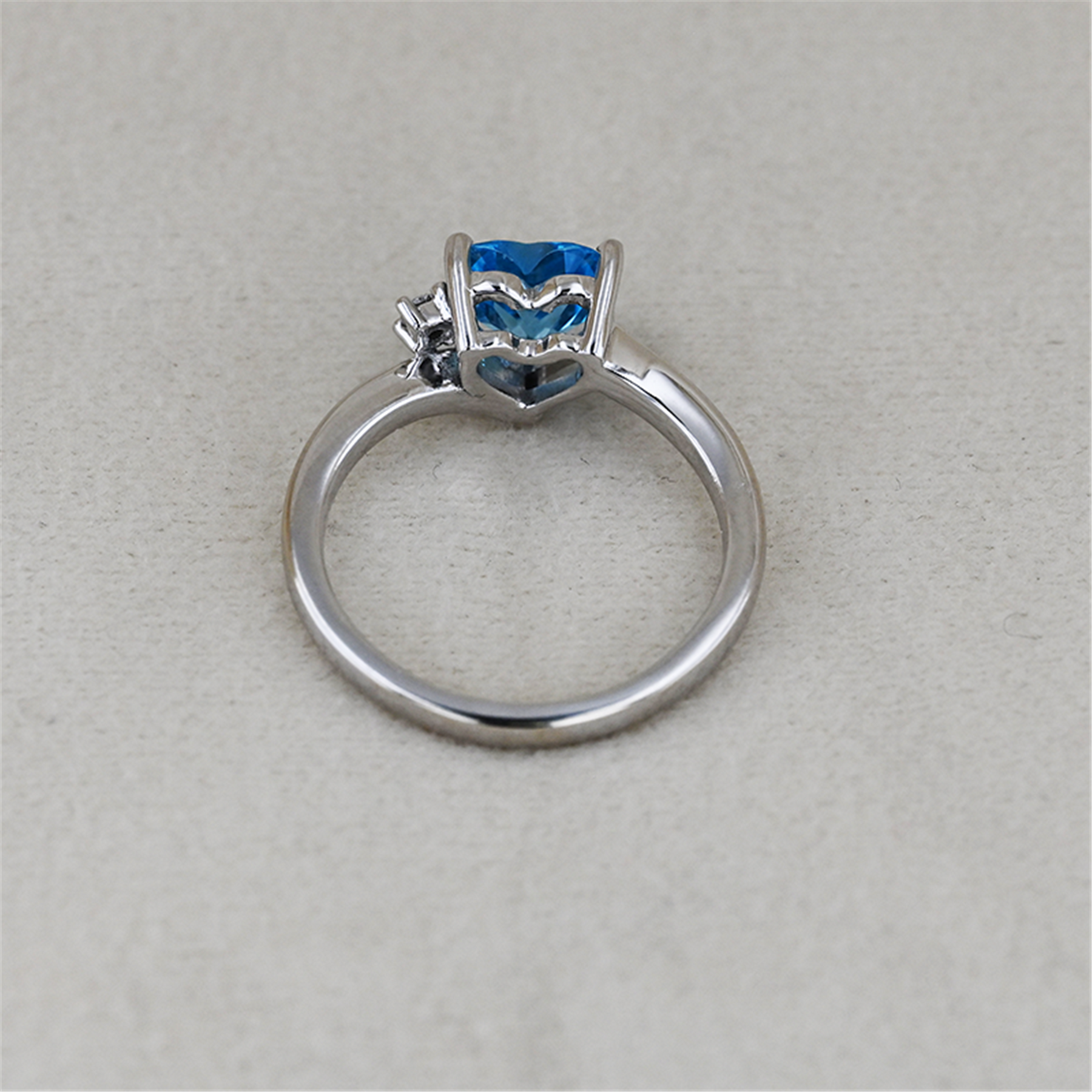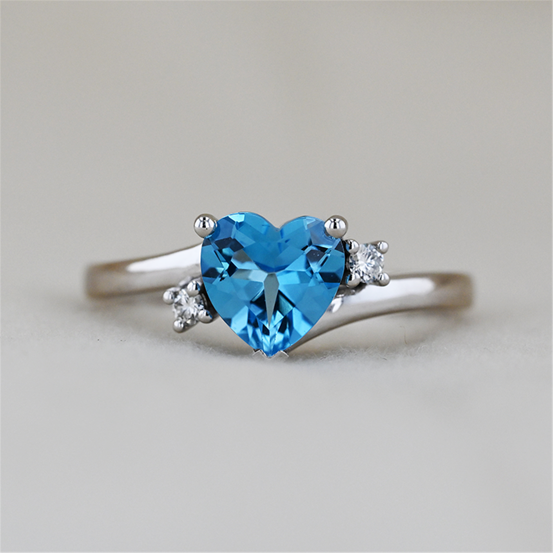 Stunning natural London blue topaz and diamond ring crafted in a beautifully constructed solid 14 karat white gold setting. The centre stone is a bold heart-shaped London blue topaz measuring approximately 8mm x 8mm, displaying the rich deep blue colour that makes this gemstone so desirable. The heart-shaped topaz is accented with two natural round brilliant cut earth-mined diamonds that add a touch of sparkle and elegance. The heavy white gold mounting features a graceful design where the shank rises behind the stone, curves around the top of the heart, and flows down toward the point of the heart, creating a distinctive and beautifully balanced look. This ring was designed for a larger finger and is currently finger size 9, though it can be resized if needed. Gross weight (14 karat white gold ring): 4.9 grams. Appraised value: $2,800. This is a donated item selling with no reserve, no buyer’s premium, no sales tax — 100% of proceeds to the charities.