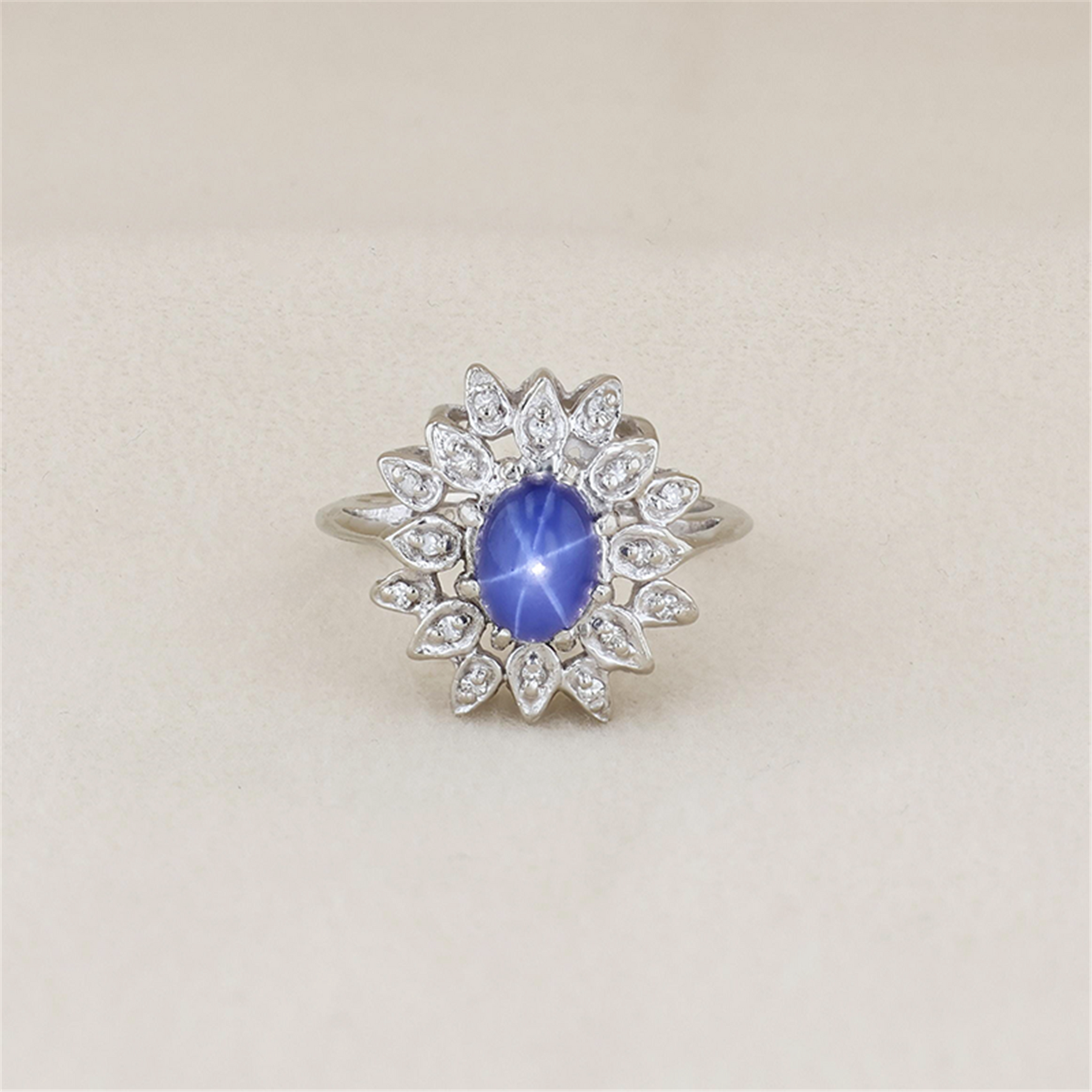 14K White Gold Synthetic Star Sapphire Natural Diamond Estate Ring