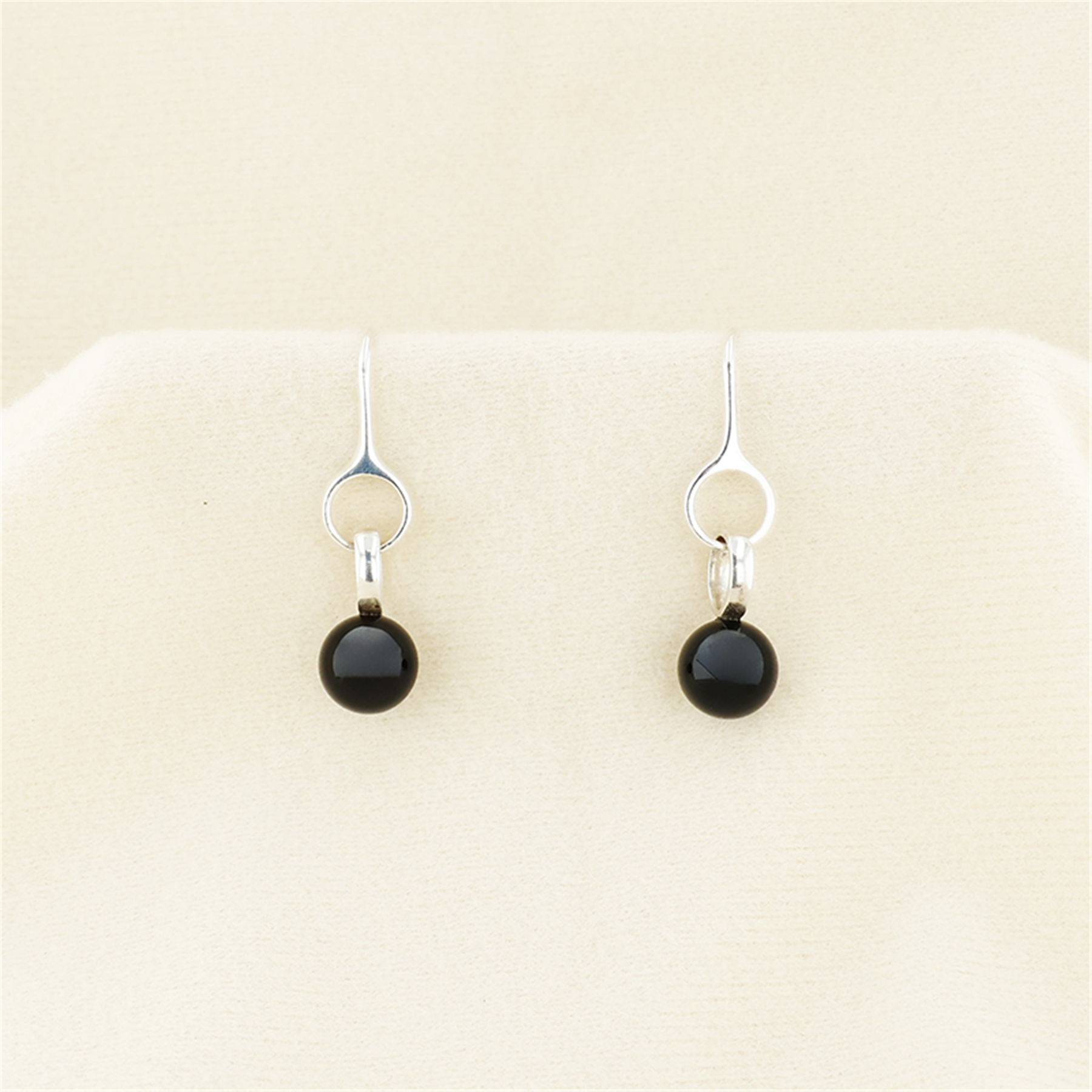 Classic Georg Jensen sterling silver earrings Classic Georg Jensen sterling silver earrings featuring a timeless Scandinavian-inspired design with fishhook backs and elegant circular drop elements — two interlocking circles suspending a polished black onyx bead. Beautifully balanced with clean lines and understated sophistication, these Georg Jensen–inspired handcrafted earrings reflect the iconic Danish modern aesthetic the brand is known for. Gross weight is 3.69 grams of sterling silver and they are presented in the original Georg Jensen box. See the link below for more detailed photographs. This is a donated piece being sold as is, no reserve, no sales tax, no buyer’s premium — 100% of the proceeds go directly to the charities.