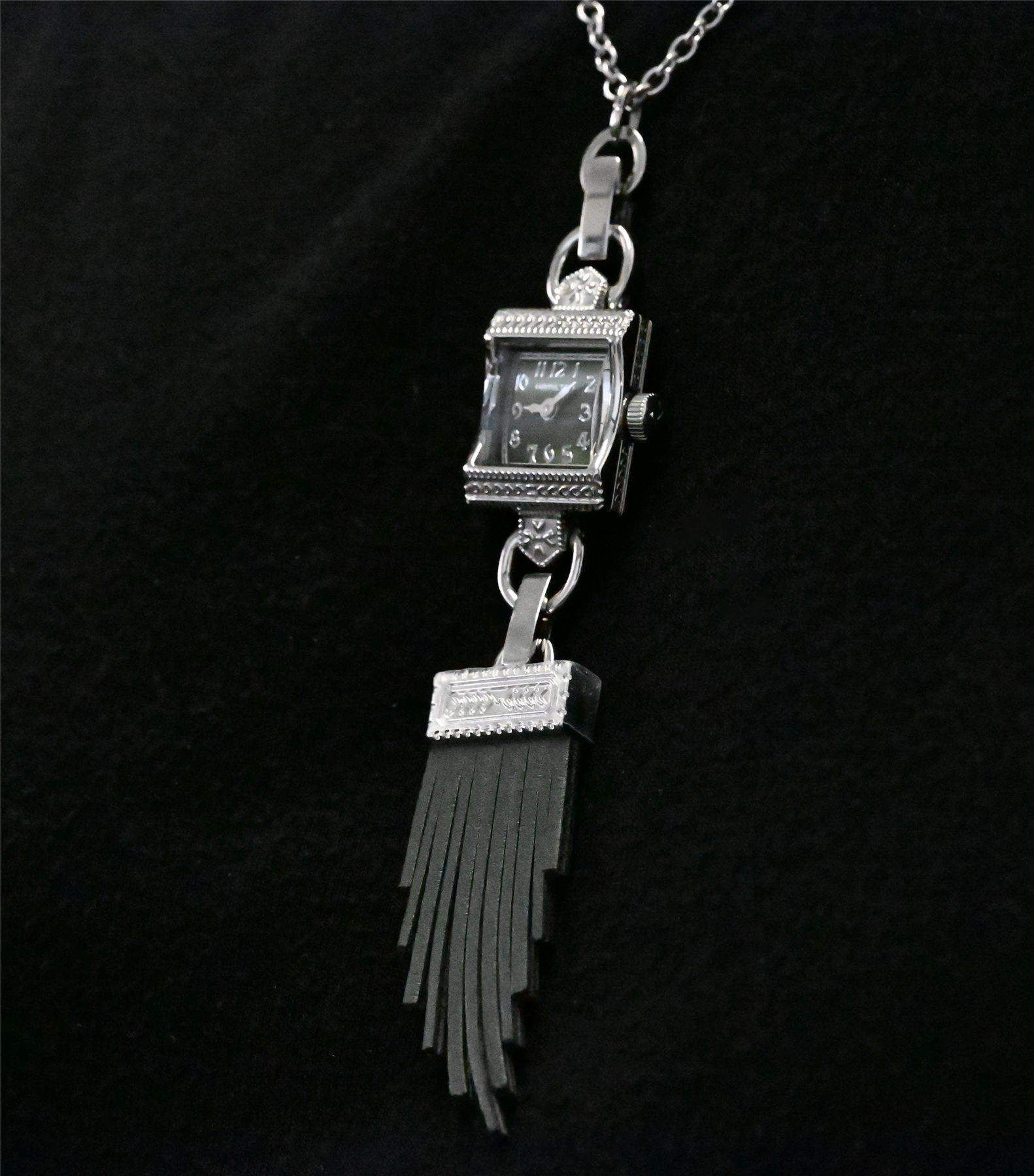 Elegant Hamilton Lady Hamilton necklace watch from the American Classic collection — a beautiful piece that blends fine jewellery with Swiss watchmaking. Inspired by the Art Deco styling of the 1930s, this ladies necklace-style watch features an intricately detailed polished stainless steel case and chain paired with a beautiful mother-of-pearl dial. The petite case measures approximately 15mm x 19mm and is powered by a reliable Swiss quartz movement, protected by a scratch-resistant sapphire crystal. Designed to be worn as an elegant jewellery watch, it combines vintage-inspired style with the quality craftsmanship Hamilton is known for. This watch is brand new, never worn, and comes as a complete full set including the original Hamilton box, booklet, and warranty card. The current Canadian retail price for this model is $1,010.