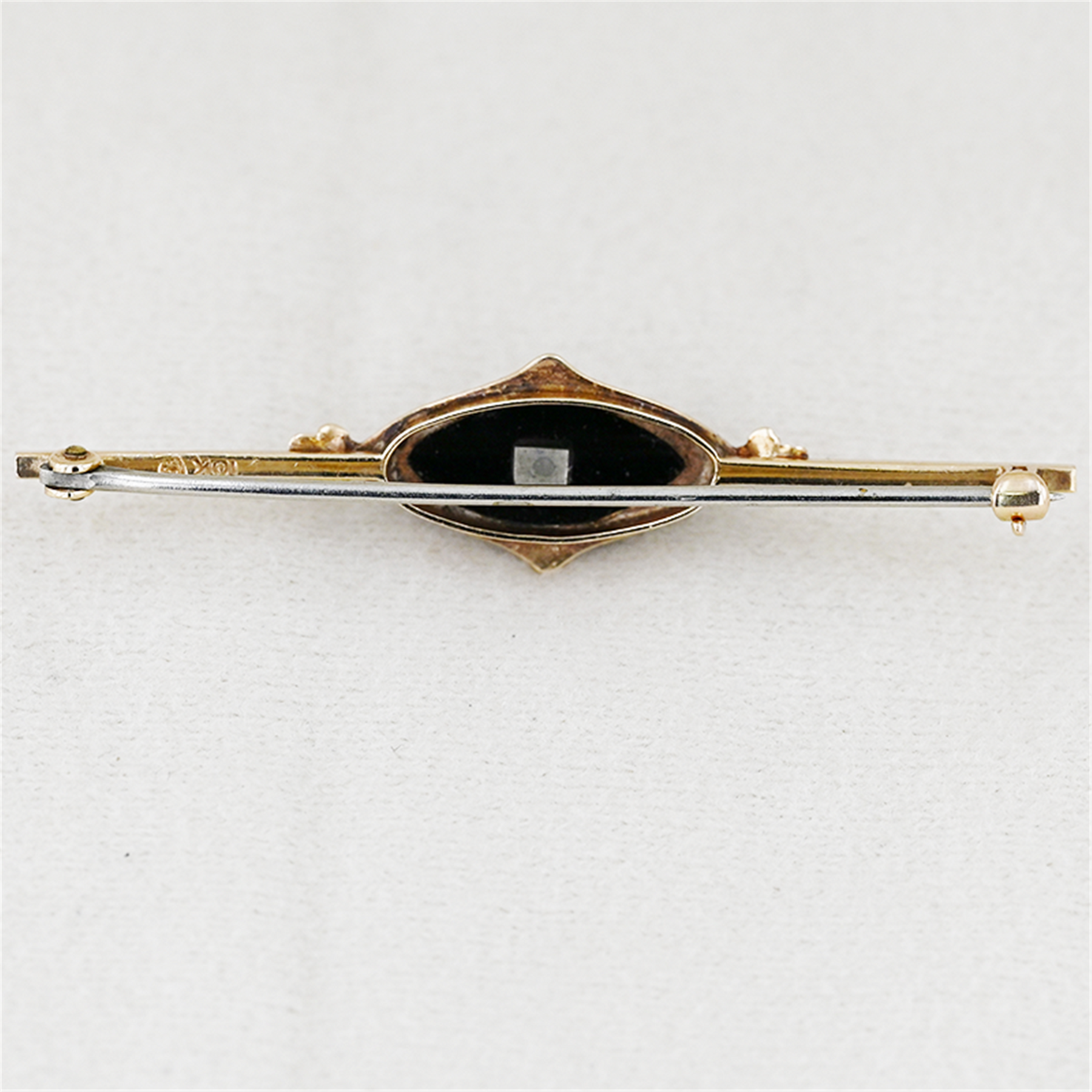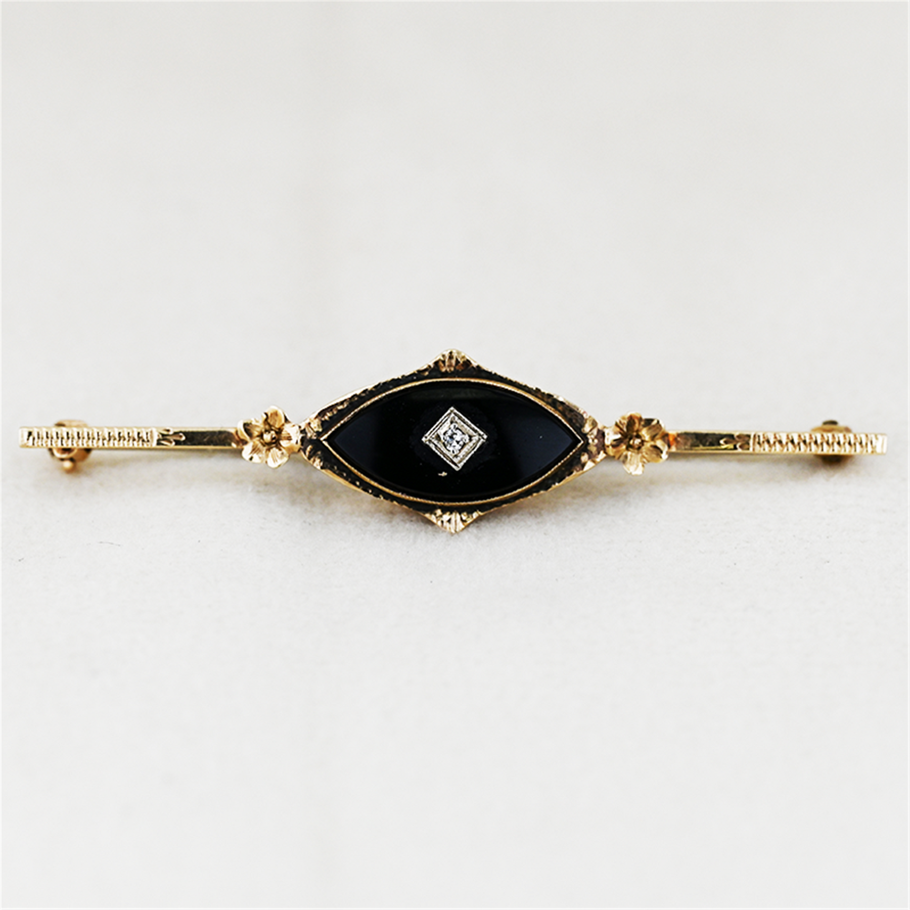 Beautiful antique black onyx and diamond ring believed to date to the circa 1920s. This elegant piece features a hand-cut marquise-shaped black onyx measuring approximately 16mm x 8mm, set horizontally in a classic vintage design. At the centre of the onyx is a small square white gold setting with delicate milgrain detailing, holding a charming old European cut diamond, adding a subtle sparkle and authentic antique character. The ring is crafted in solid 10 karat yellow gold with beautiful handcrafted workmanship typical of the period. A lovely example of early 20th century jewellery design with timeless style. Gross weight (10 karat gold ring): 2.7 grams. Appraised value: $1,200. This is a donated item selling with no reserve, no buyer’s premium, no sales tax — 100% of proceeds to the charities.