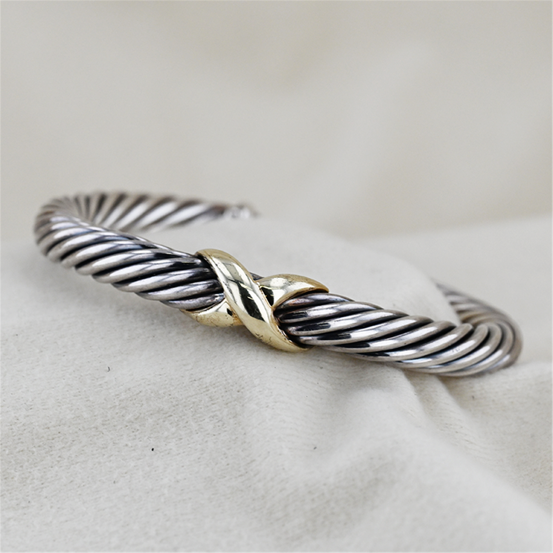 Sterling Silver Two Toned David Yurman Twisted Bangle