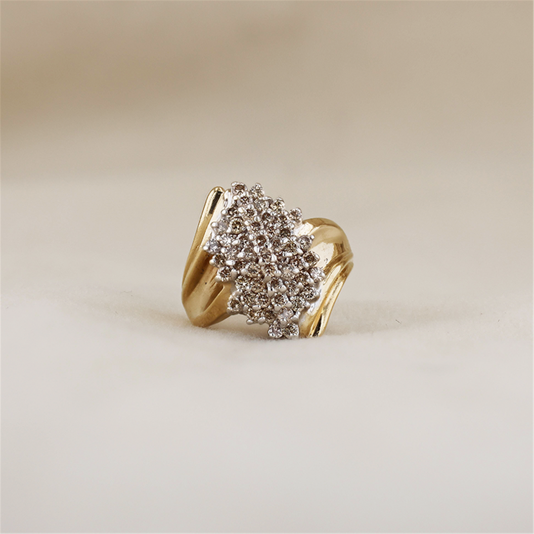 10K Yellow Gold 1.00ctw Diamond Cluster Ring