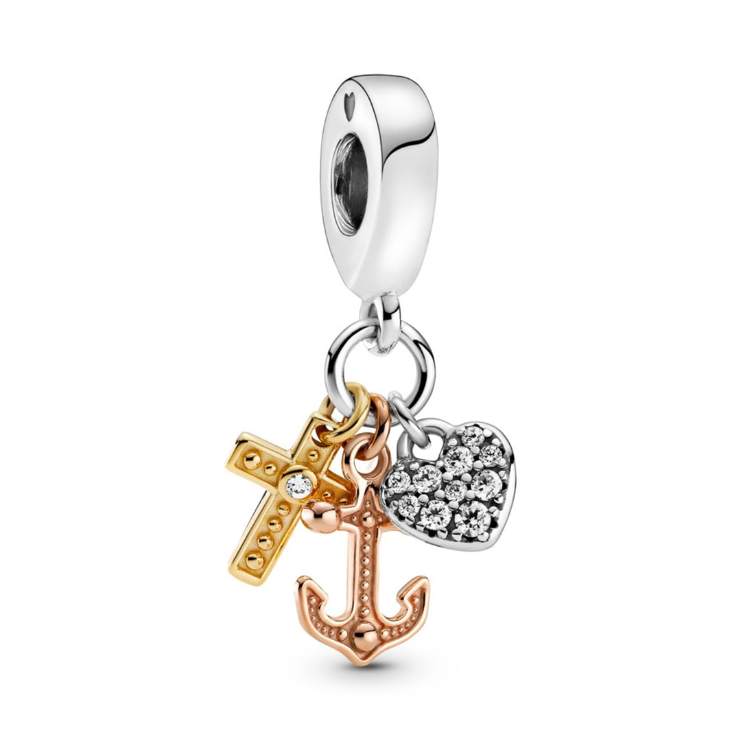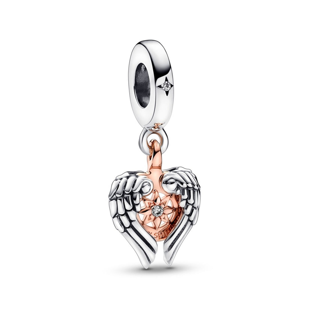 Angel, snowflake and star charm in sterling silver with clear CZ in 14k gold star details