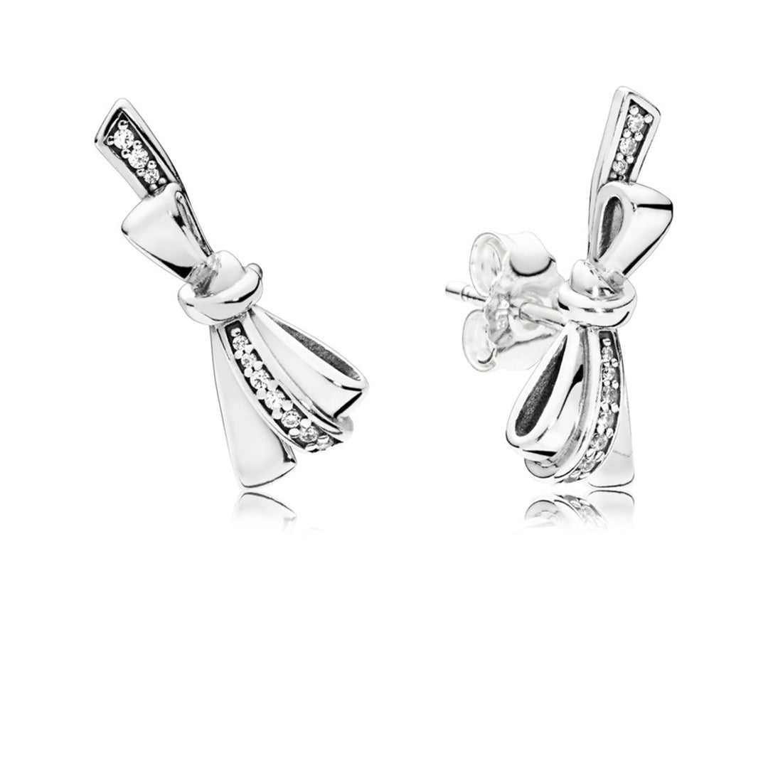 Brilliant Bow, Clear CZ Bow silver stud earrings with clear CZ