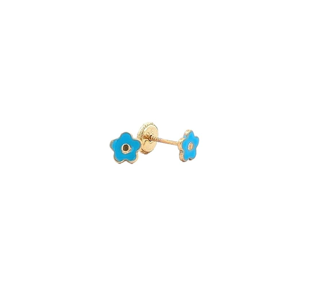 10K Yellow Gold Blue Enamel 5mm Flower Stud Earrings