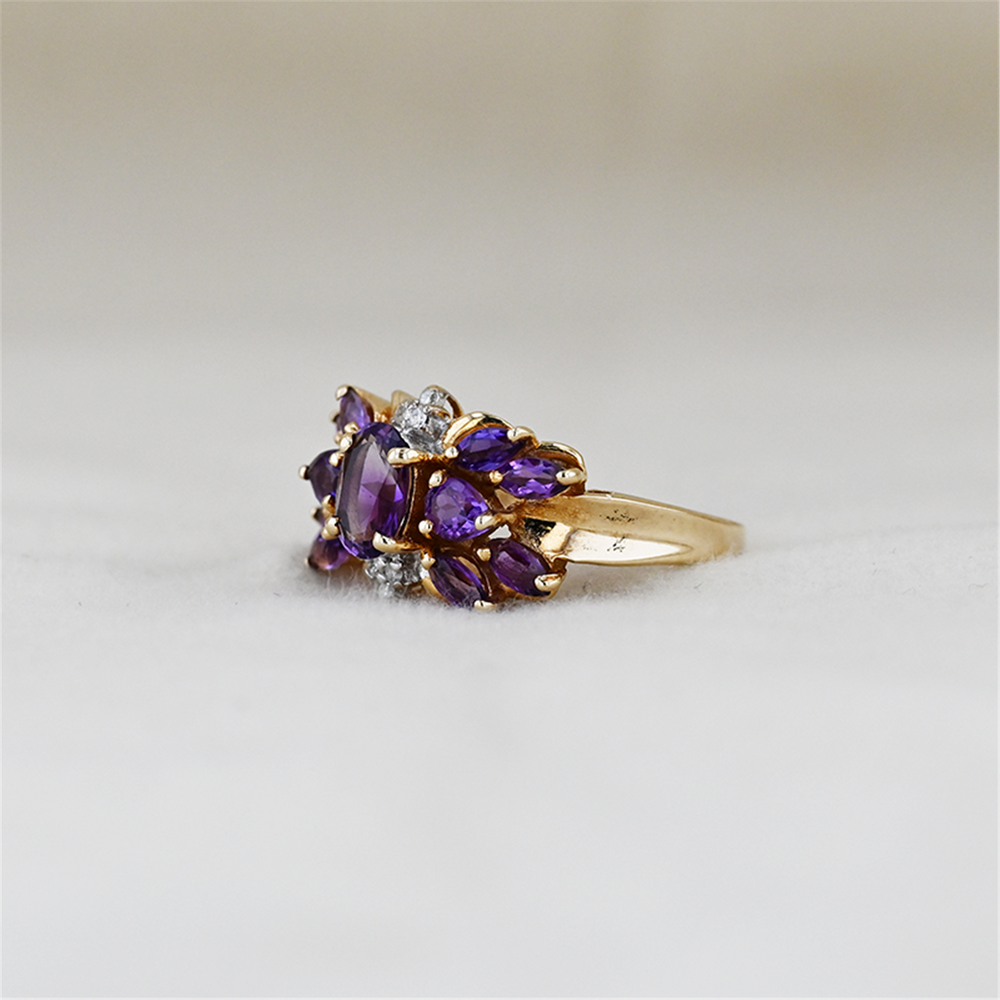 10K Yellow Gold Amethyst Diamond Estate Ring