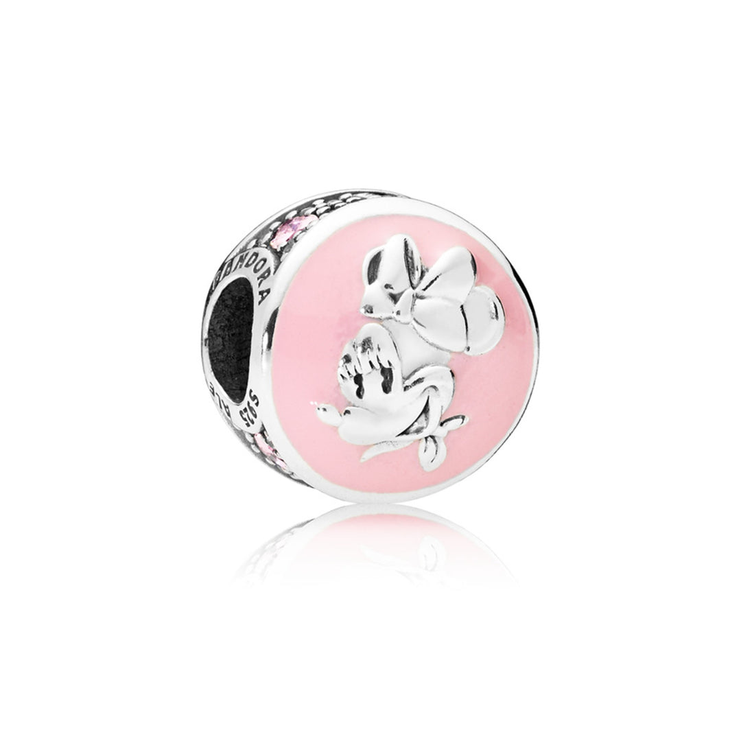 Disney, Vintage Minnie Disney Minnie silver charm with pink enamel, clear and pink CZ