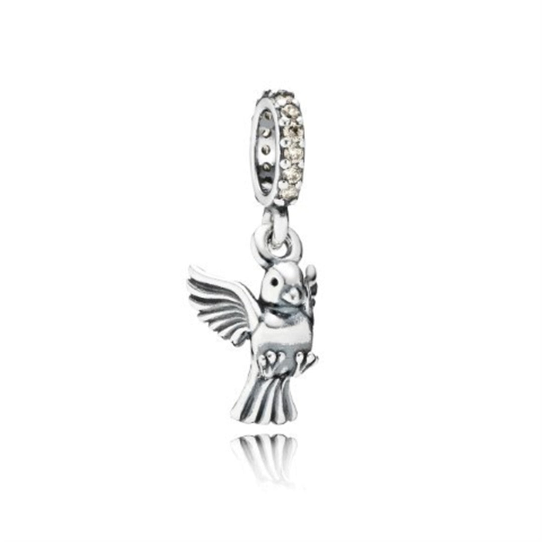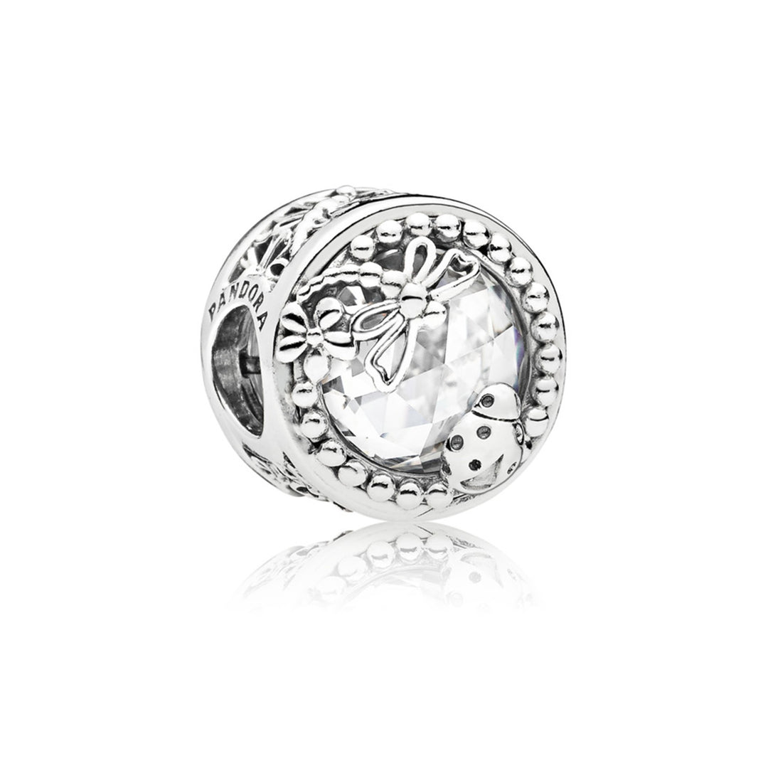 Dragonfly and ladybug charm in sterling silver with 2 bezel-set rose-cut clear CZ