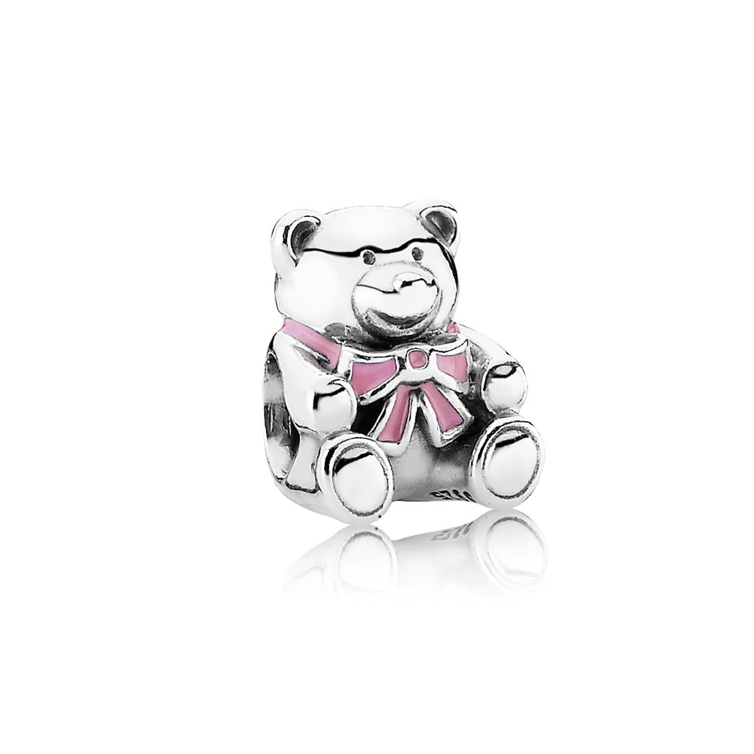 Interlocked crowned hearts silver petite element with pink enamel