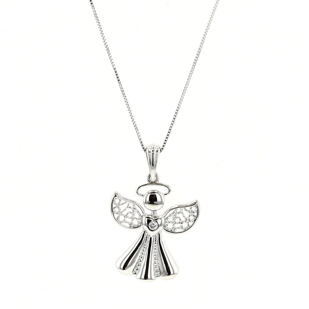 10KT White Gold 0.015ctw Diamond Angel Necklace