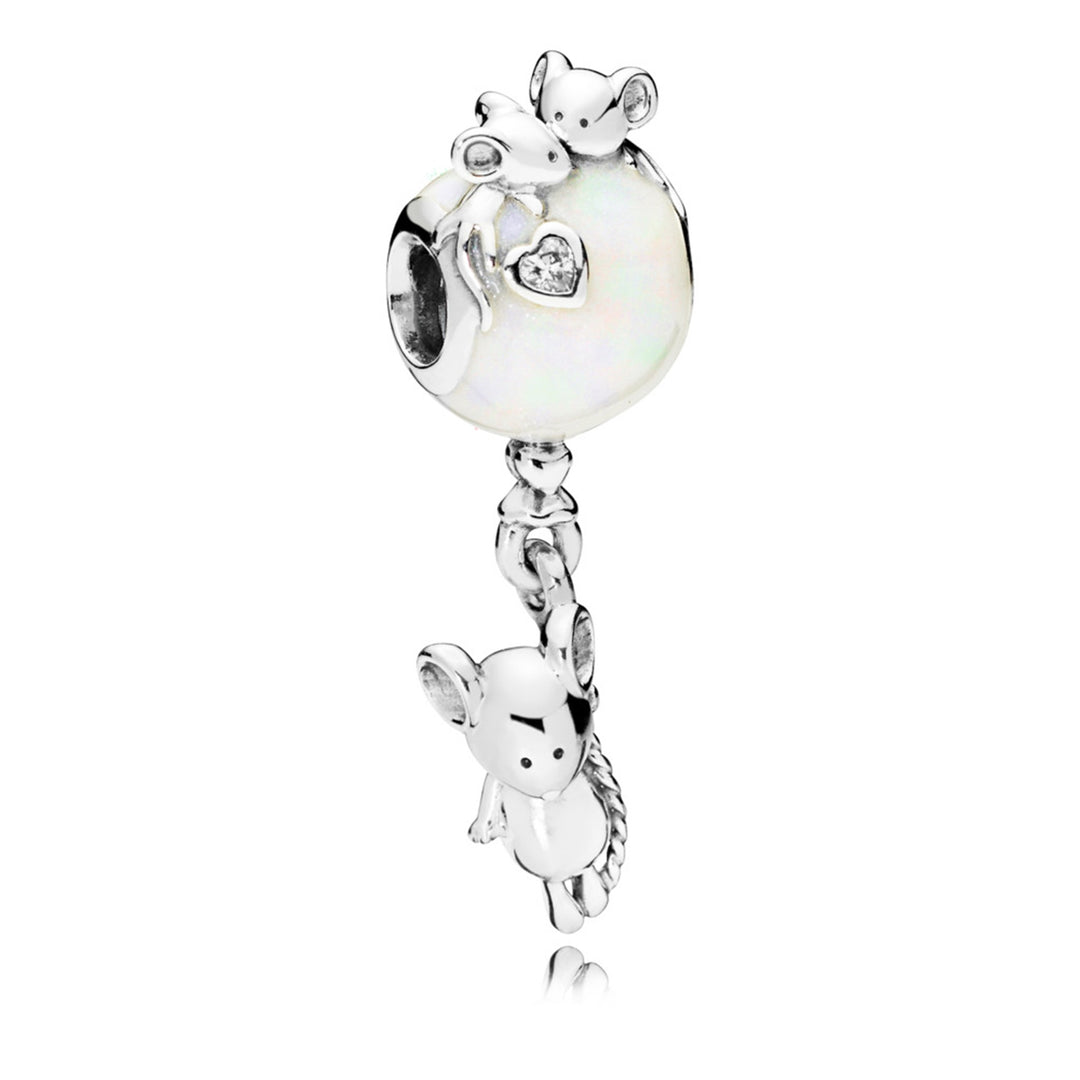 Mouse & Balloon, Silver Enamel & Clear CZ Balloon and mouse silver charm with silver enamel and clear CZ
