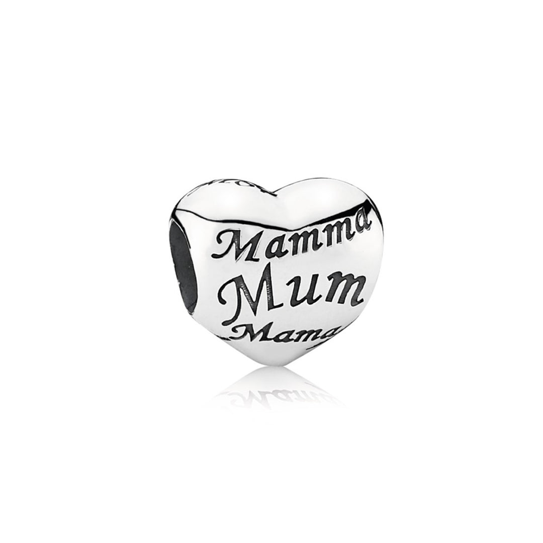 Mother and son heart silver charm with clear CZ