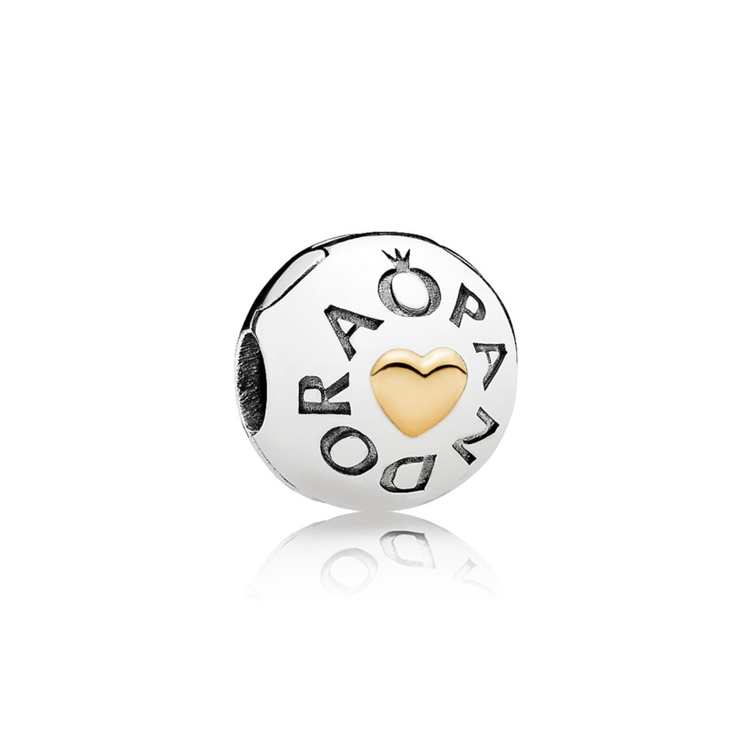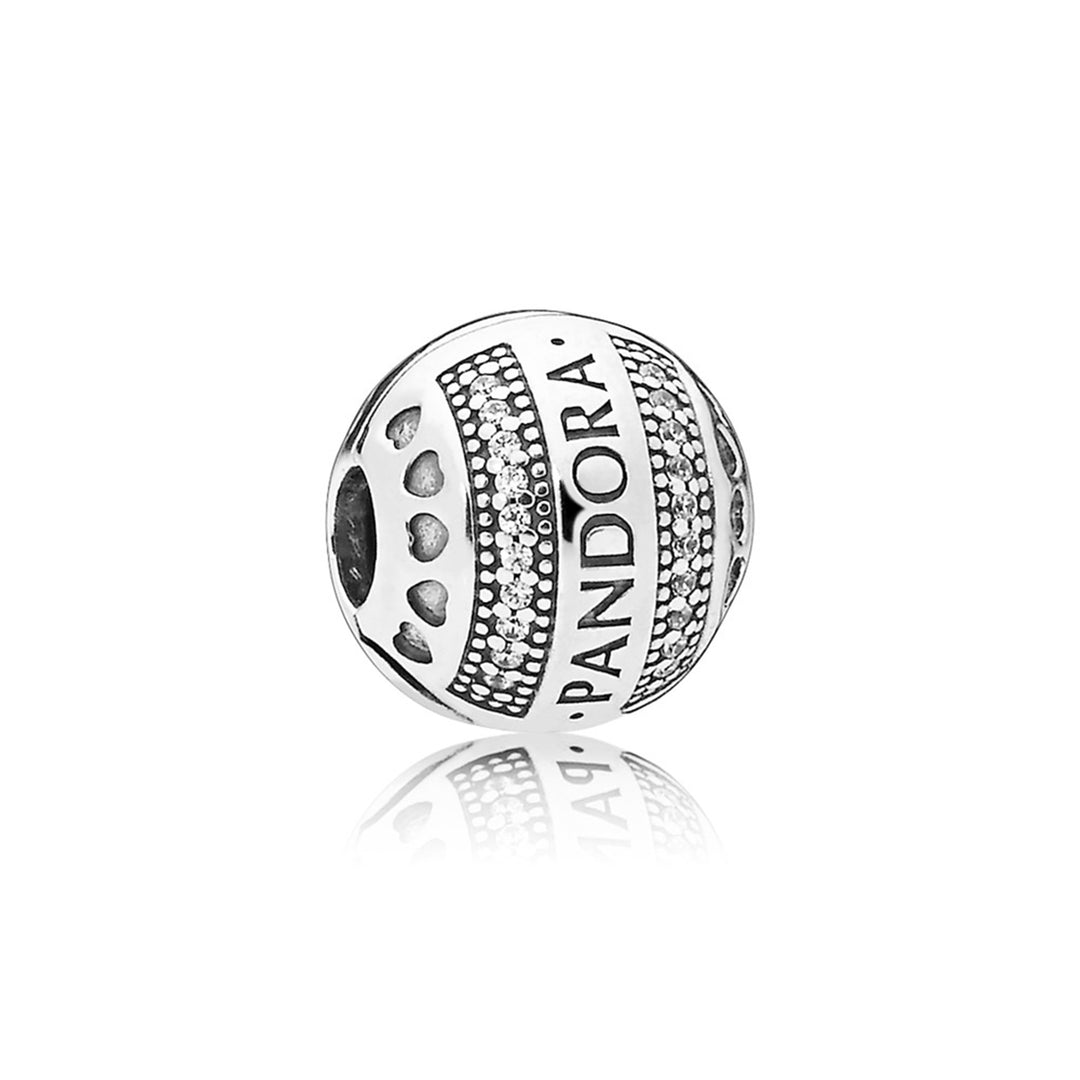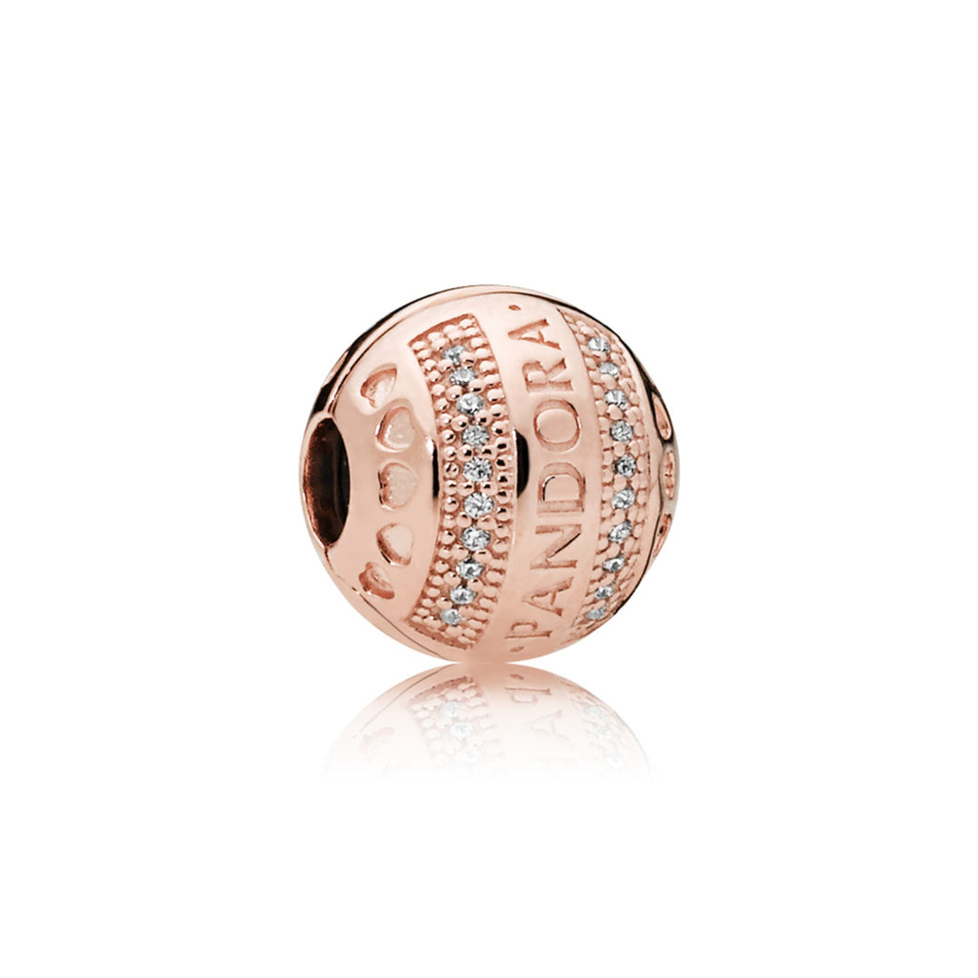 PANDORA logo clip in PANDORA Shine with 40 micro bead-set clear CZ and silicone grip