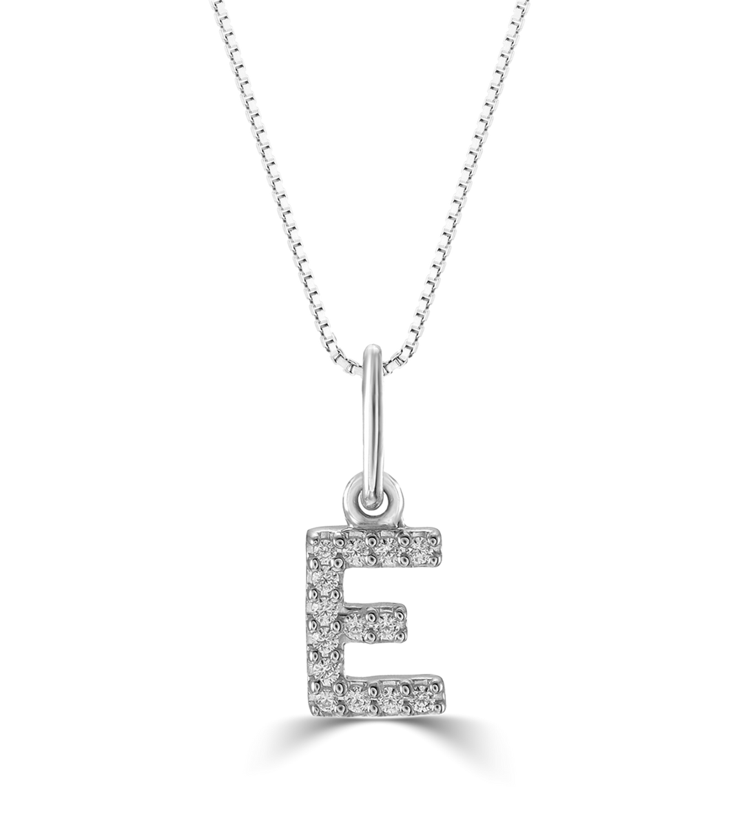 10KT White Gold 0.05ctw Diamond "E" Initial Necklace