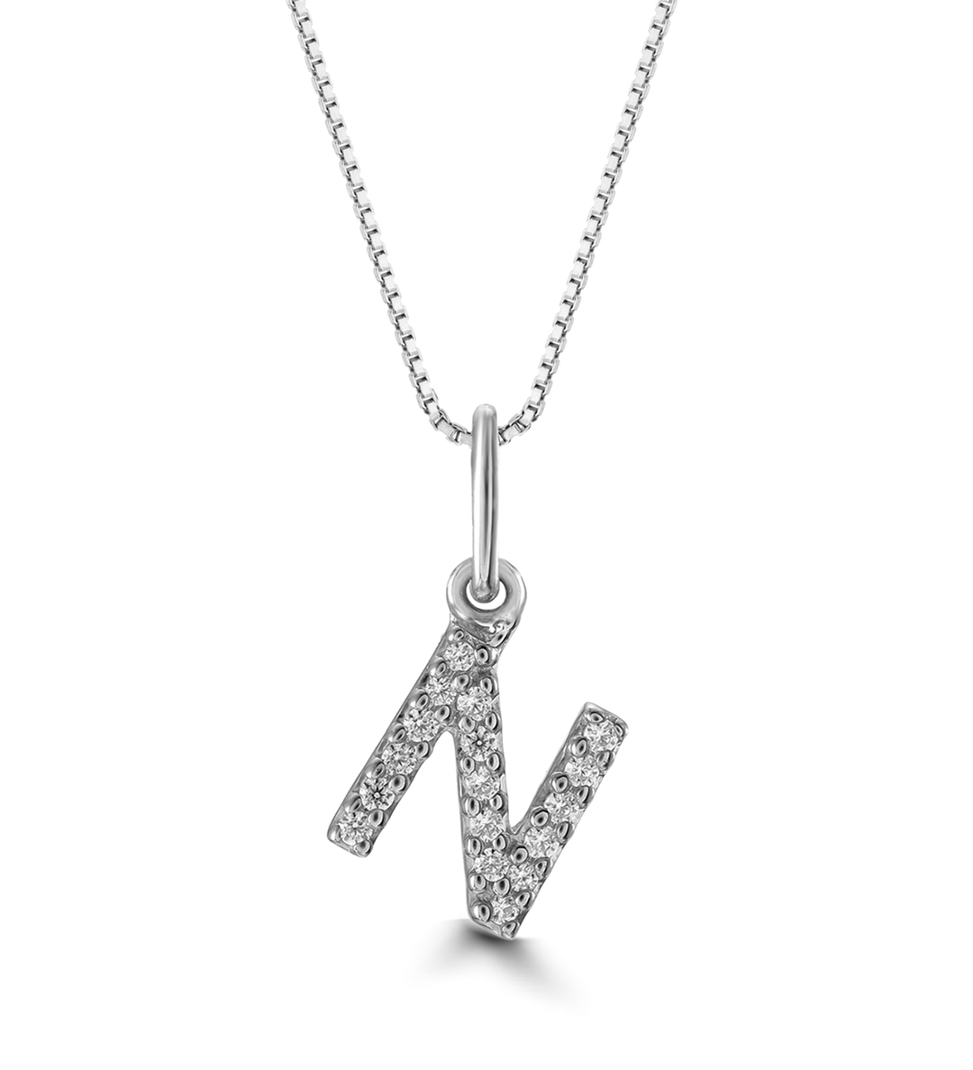 10KT White Gold 0.06ctw Diamond "N" Initial Necklace