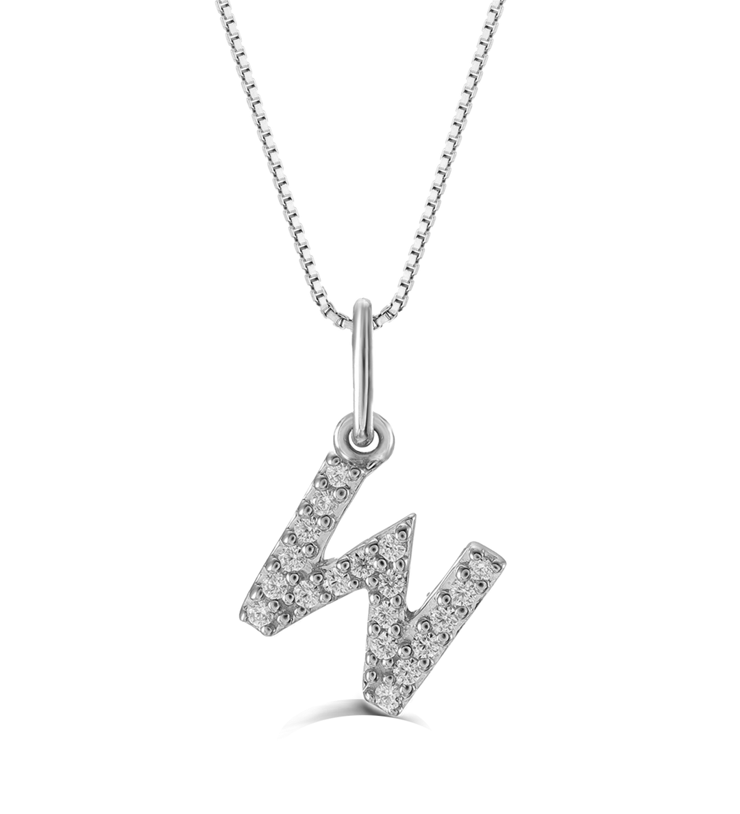 10KT White Gold 0.06ctw Diamond "W" Initial Necklace