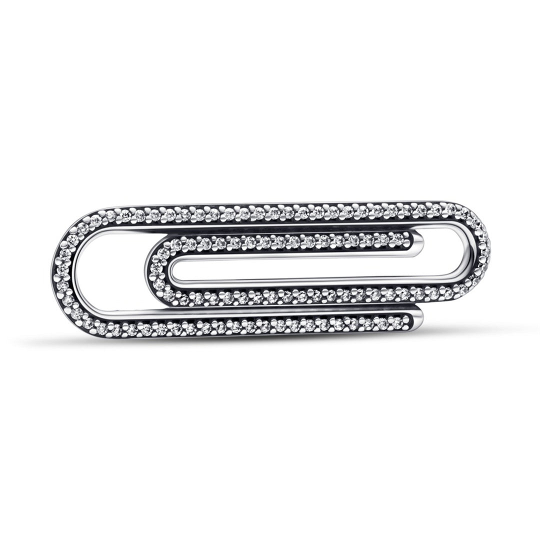 Paper clip sterling silver link with clear cubic zirconia