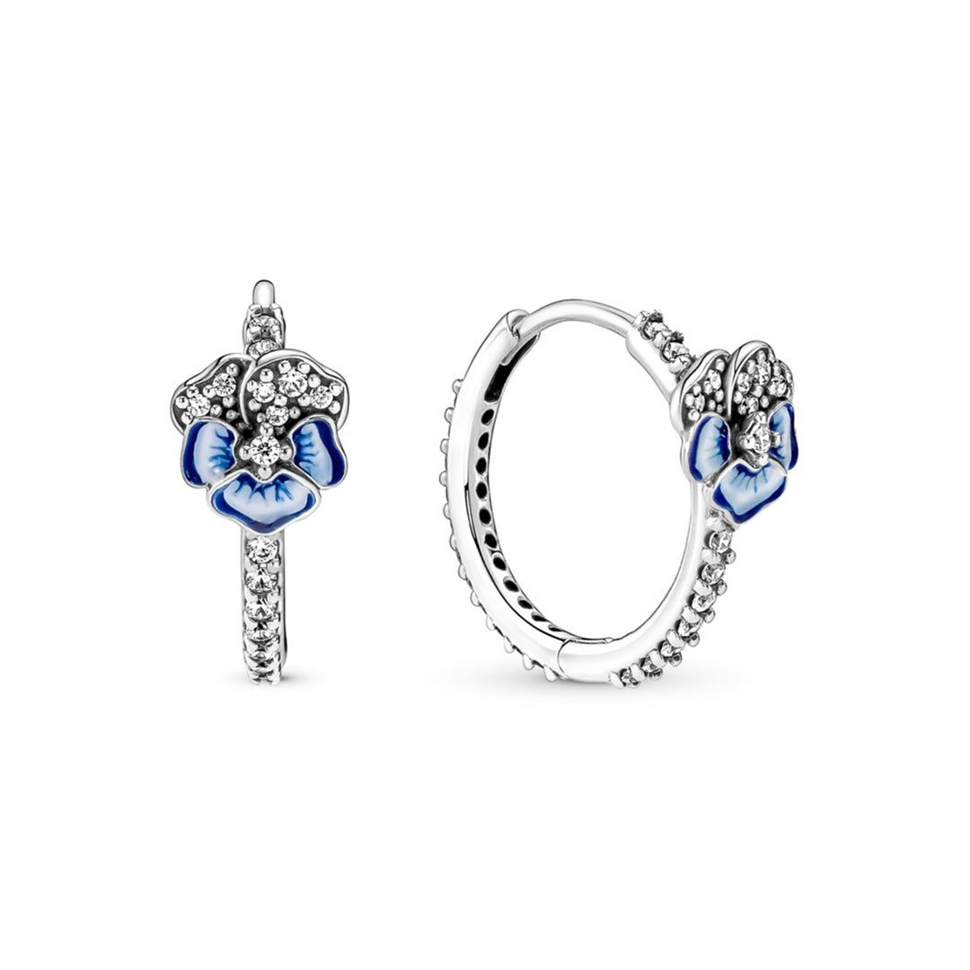 Pansy sterling silver hoop earrings with clear CZ