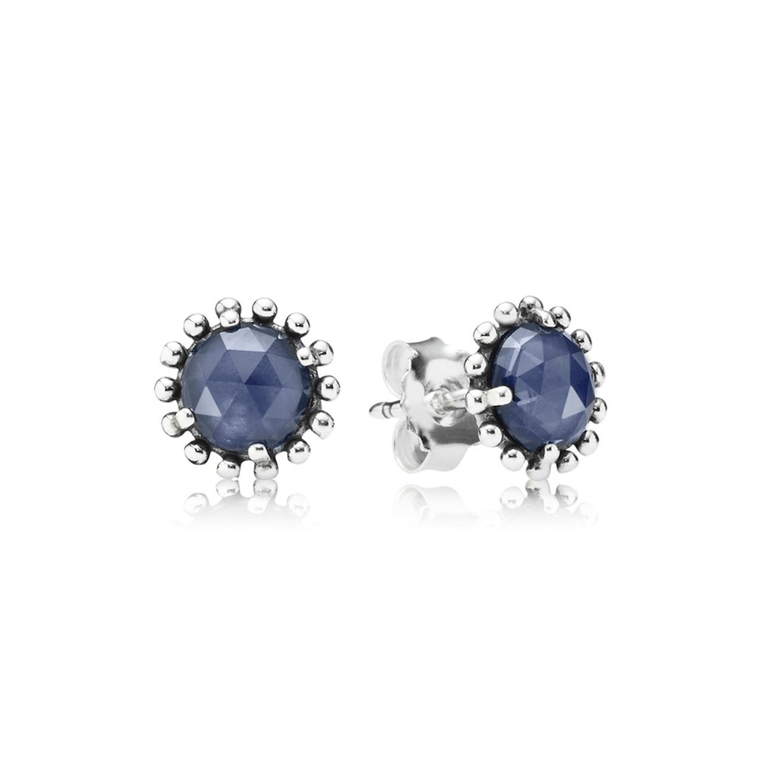 Silver stud earrings with midnight blue crystals