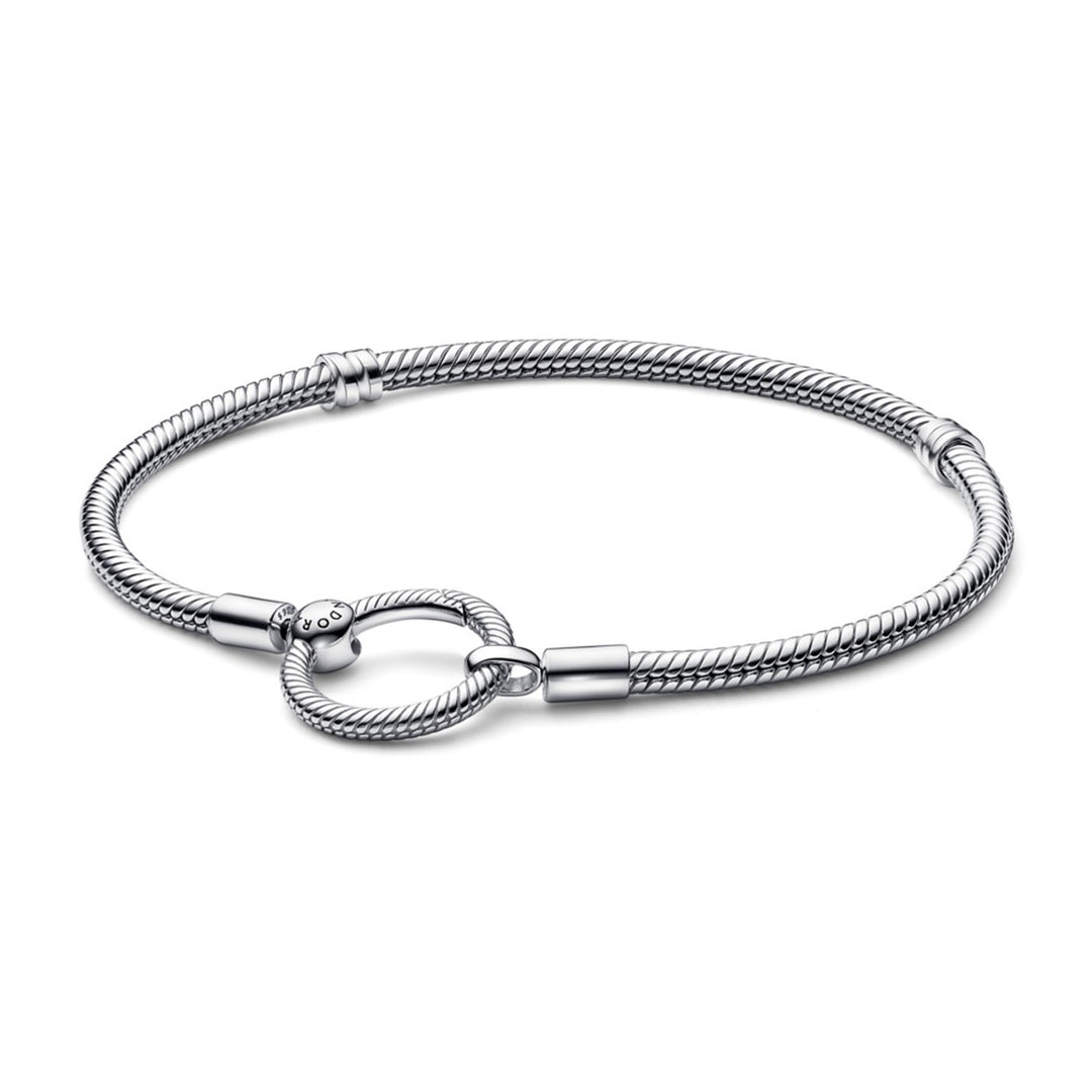 Snake chain sterling silver bracelet and crown O clasp with clear CZ