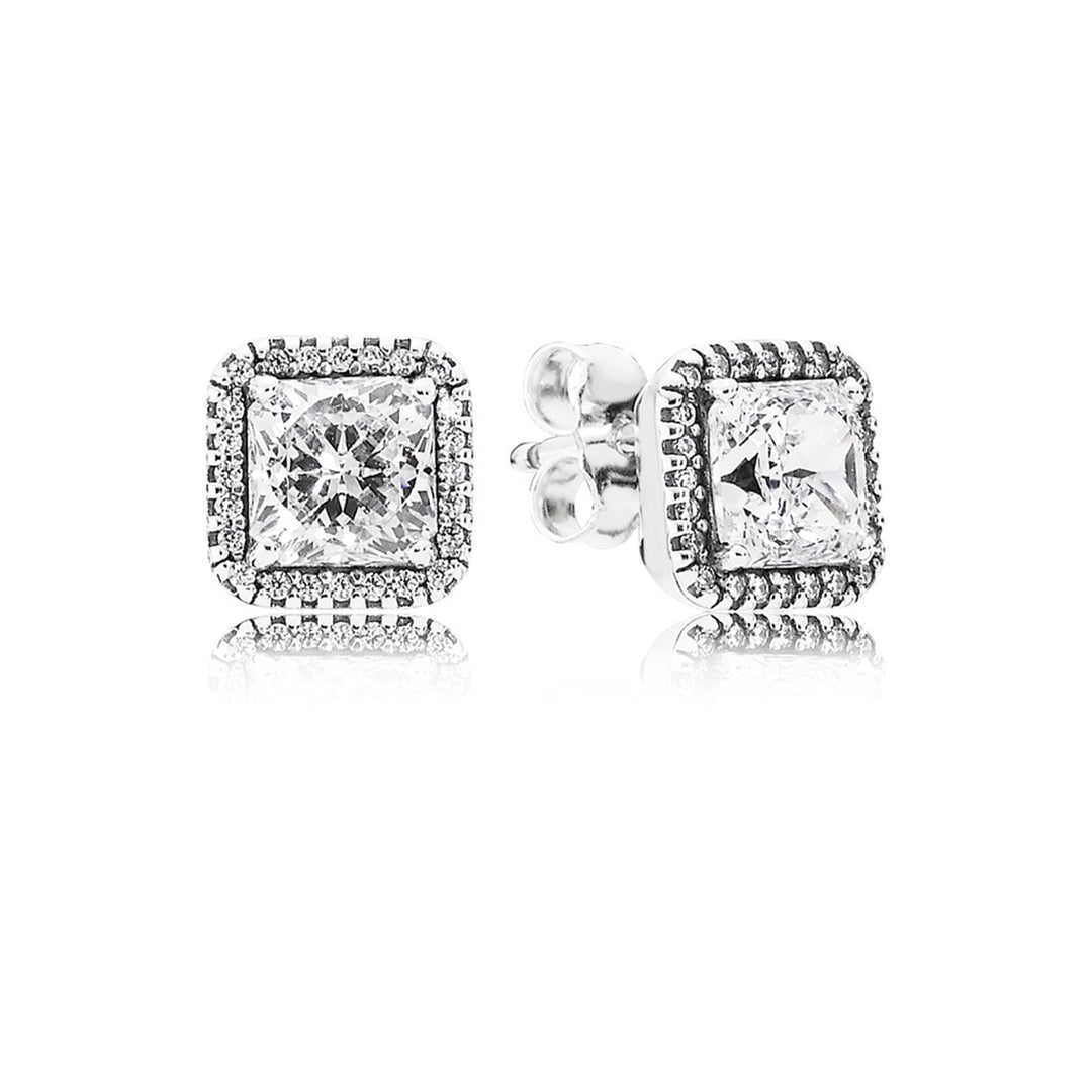 Square Sparkle Halo Stud Earrings