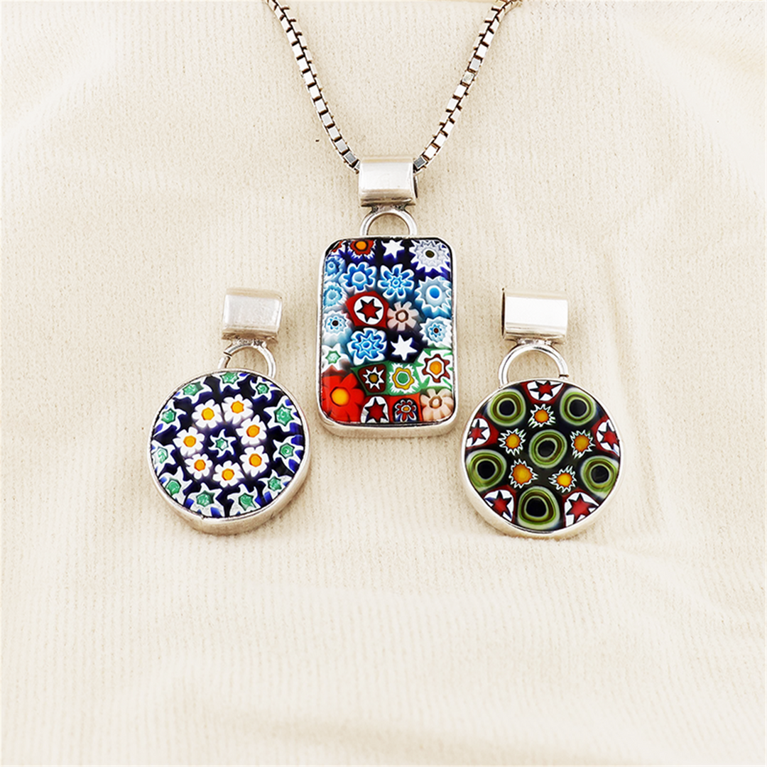 Sterling Silver 3-Piece Murano Glass Pendants