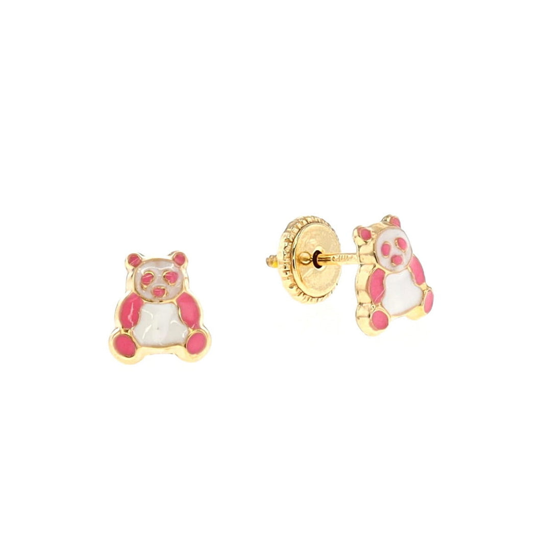 10KT Yellow Gold Pink and White Panda Stud Earrings