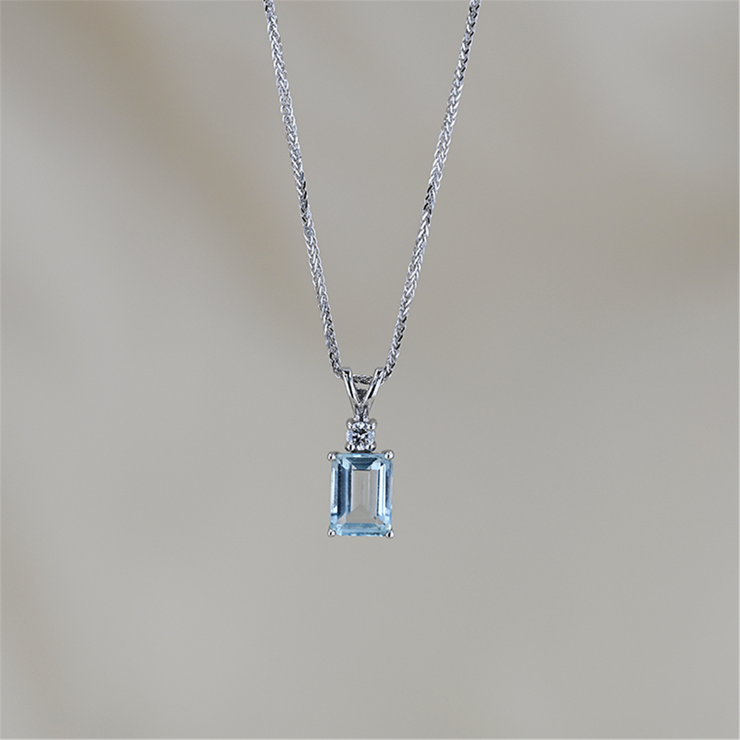 14KT White Gold Aquamarine and Diamond Necklace
