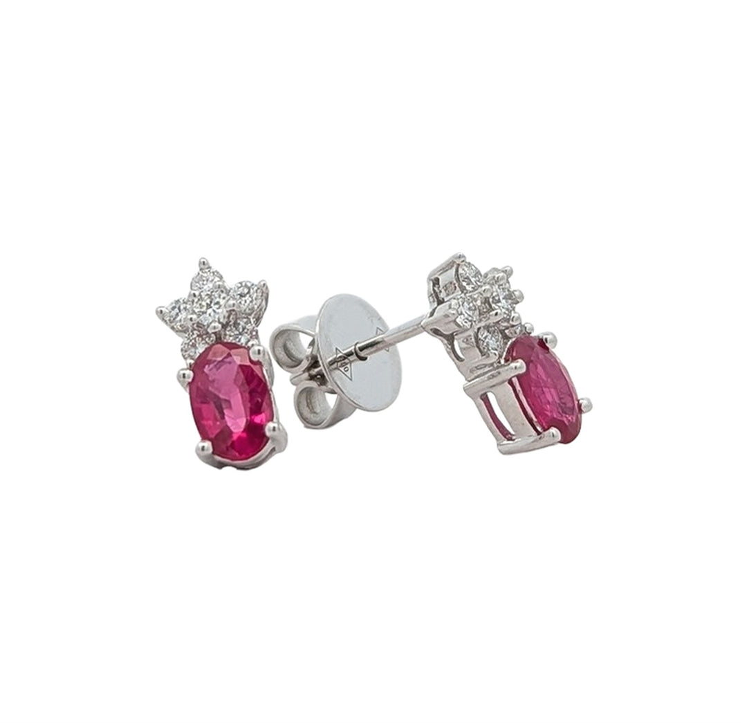 18K White Gold 0.25ctw Diamond Ruby Stud Earrings