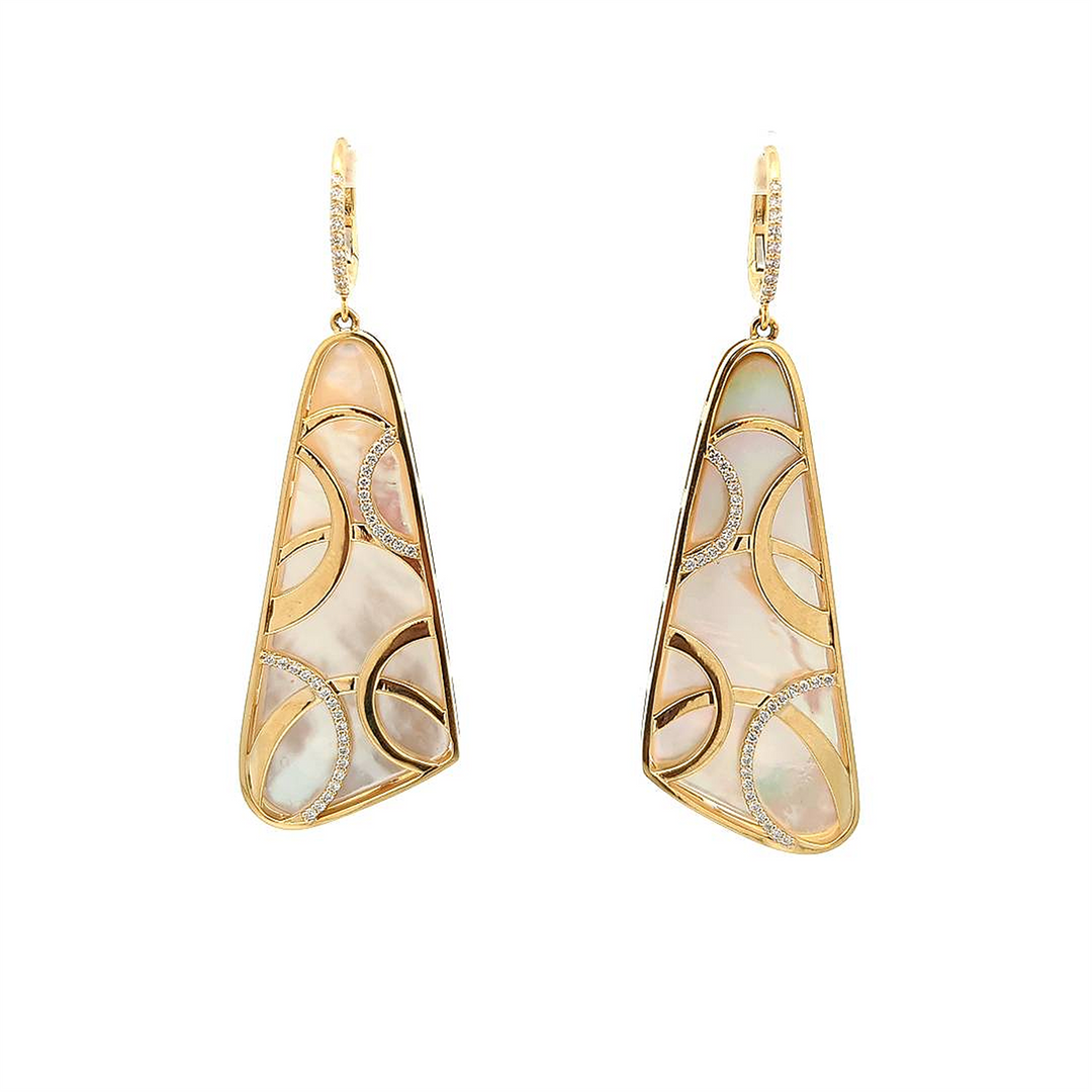 18KT Yellow Gold Mother of Pearl and 0.51ctw Diamond Drop Earrings