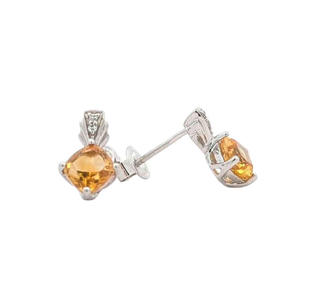10KT White Gold Citrine and Diamond Earrings
