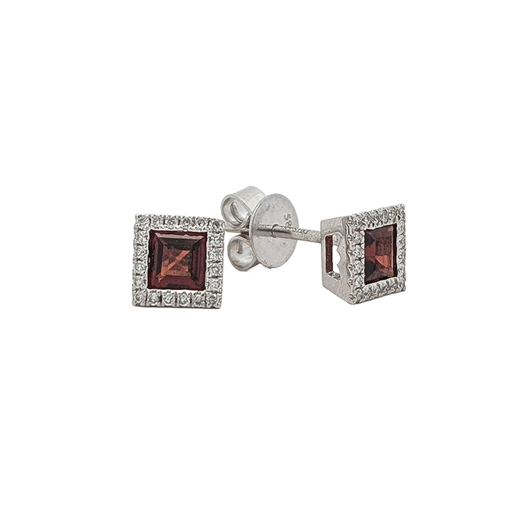 14K White Gold Garnet 0.15ctw Diamond Stud Earrings