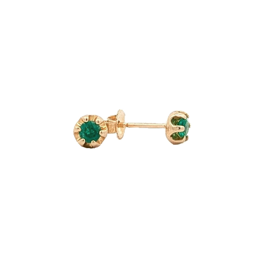 10KT Yellow Gold Genuine Emerald Stud Earrings