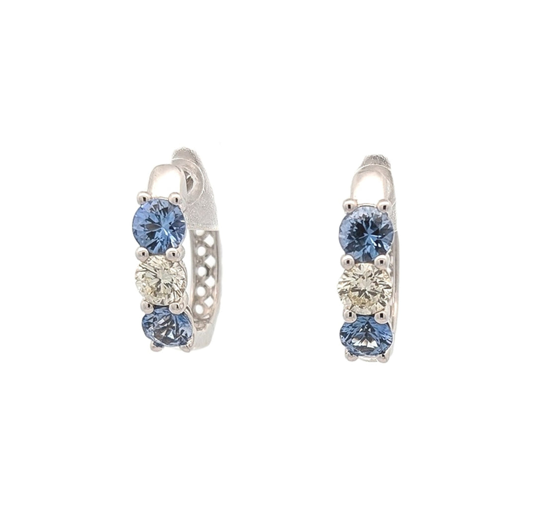 14K White Gold Genuine Sapphire 0.68ctw Diamond Hoop Earrings