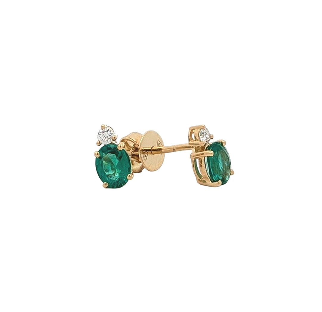 18K Yellow Gold 0.07ctw Diamond Emerald Stud Earrings