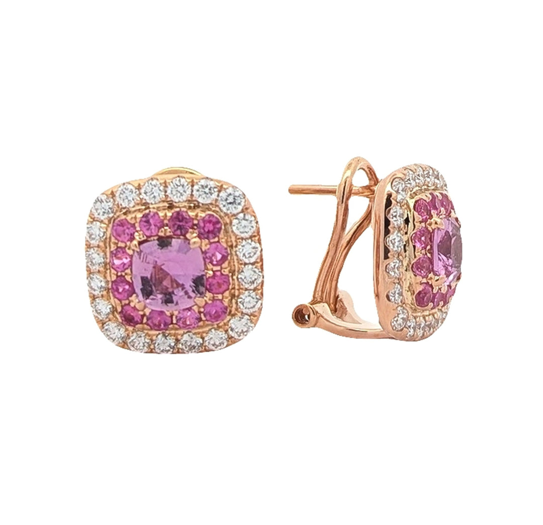 18KT Rose Gold Natural Pink Sapphire and 0.75ctw Diamond Estate Earrings
