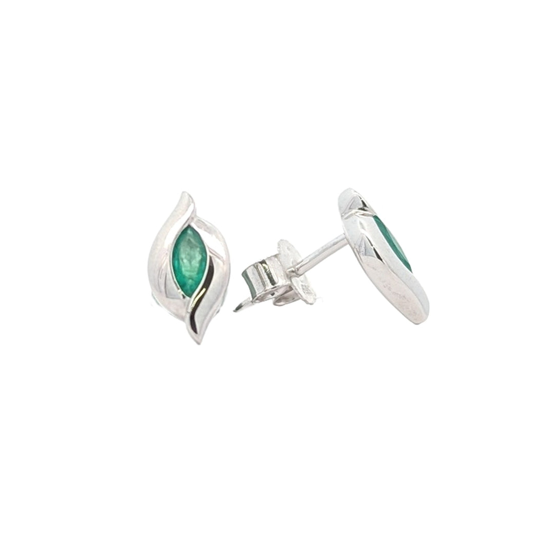 14KT White Gold Emerald Stud Earrings