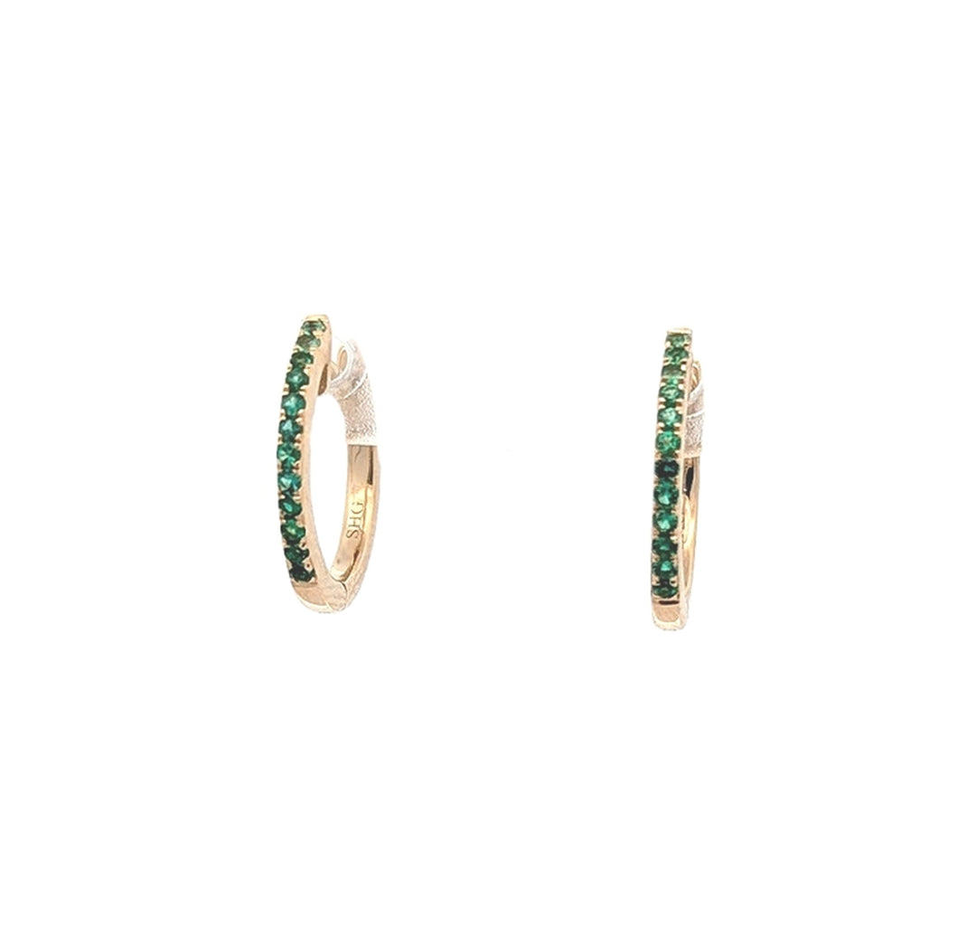 14K Yellow Gold Emerald Hoop Earrings