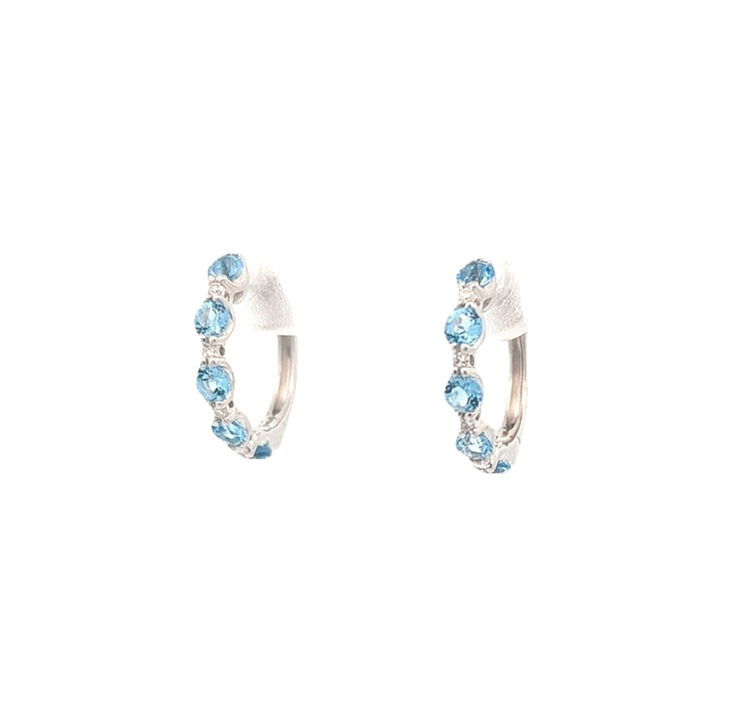 10KT White Gold Swiss Blue Topaz and 0.06ctw Diamond Hoop Earrings