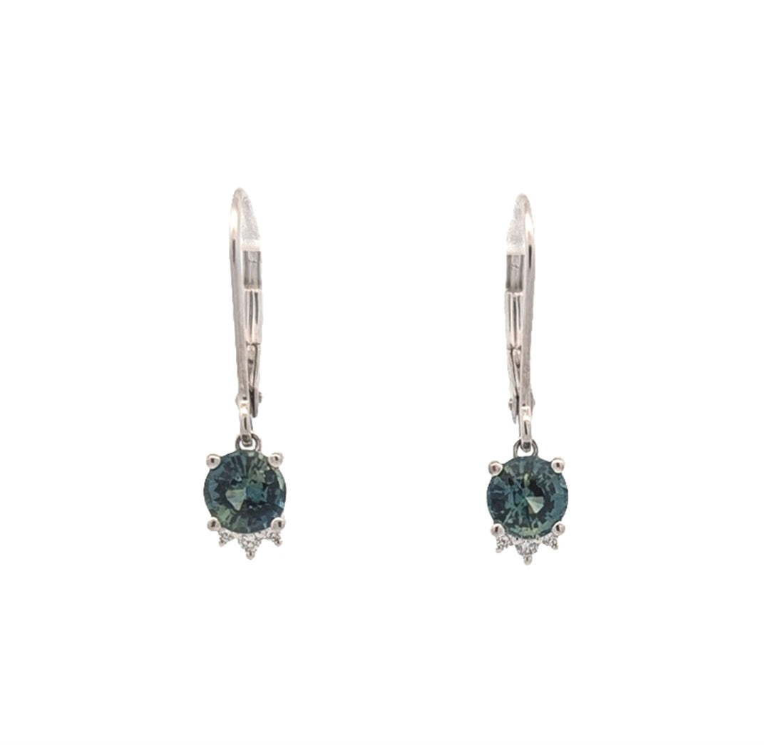 14KT White Gold Blue/Green Sapphire and 0.05ctw Diamond Earrings