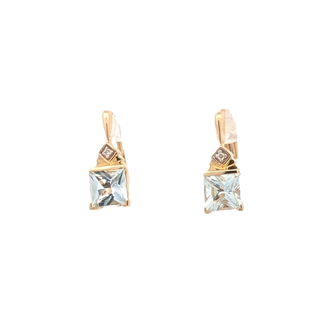 10KT Yellow Gold Blue Topaz and 0.04ctw Diamond Stud Earrings