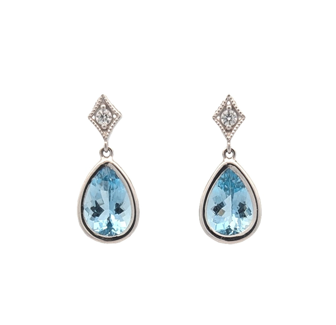 14KT White Gold Aquamarine and 0.08ctw Diamond Drop Earrings