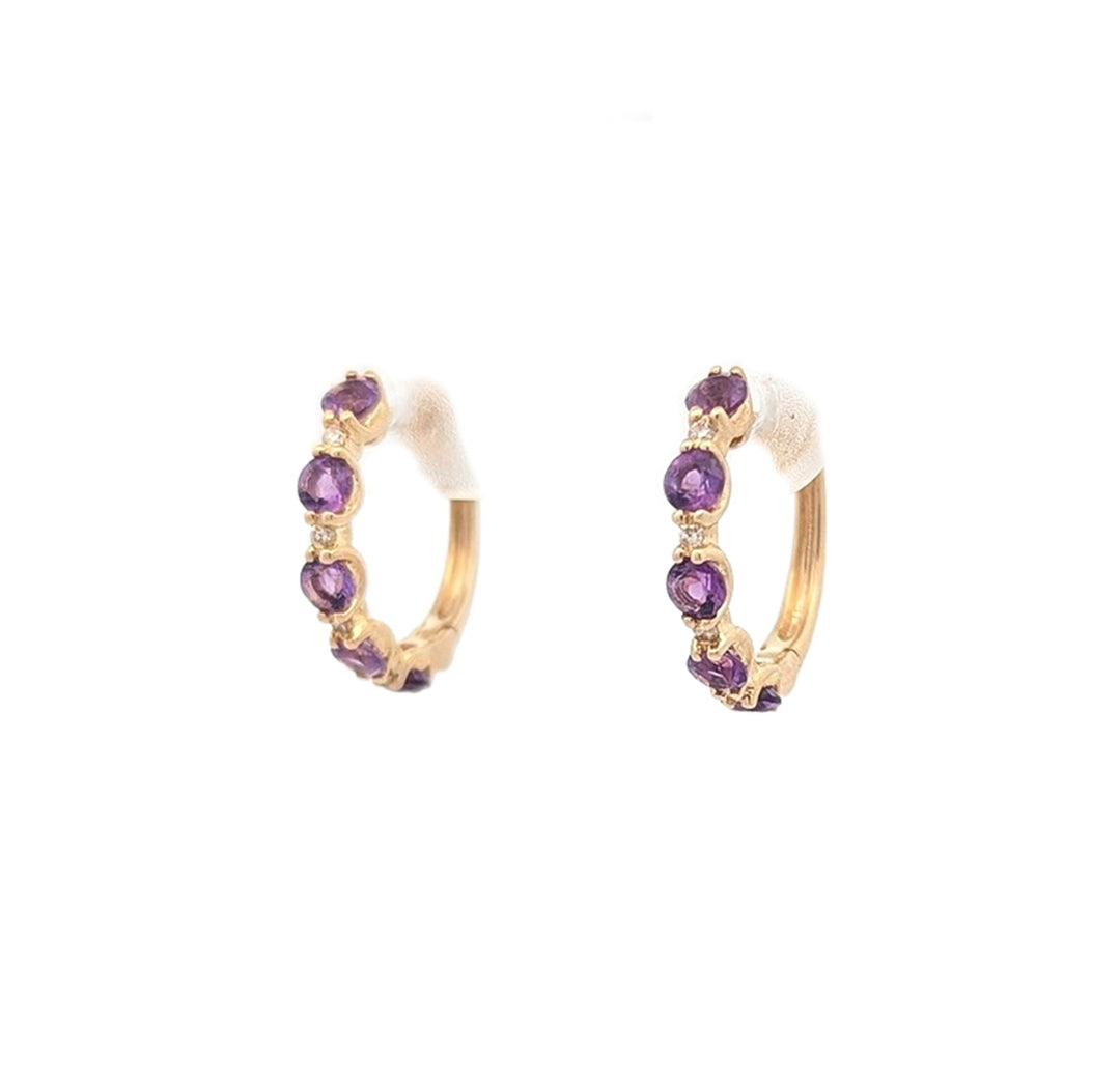 10KT Yellow Gold Amethyst and 0.05ctw Diamond Hoop Earrings
