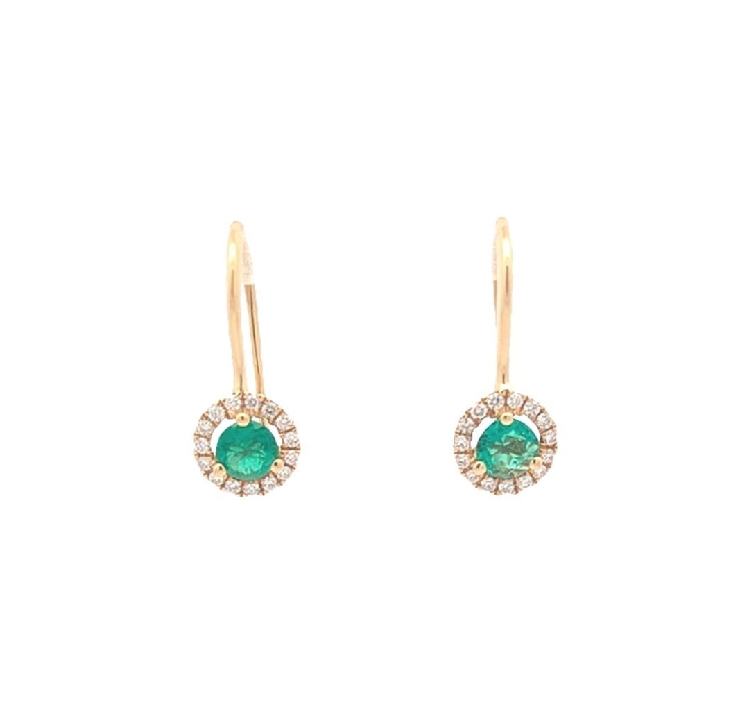 18KT Yellow Gold Emerald and 0.15ctw Diamond Drop Earrings