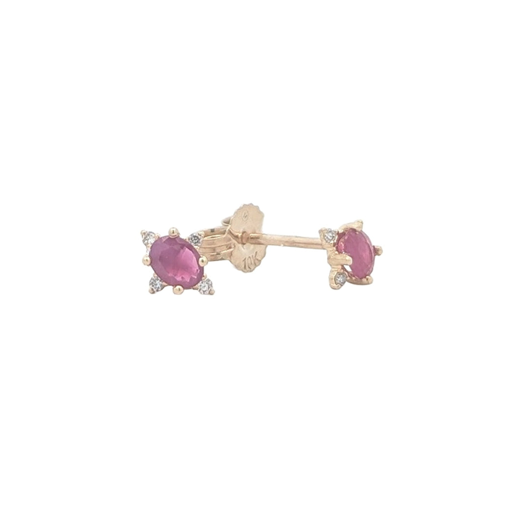 10KT Yellow Gold Ruby and 0.04ctw Diamond Stud Earrings