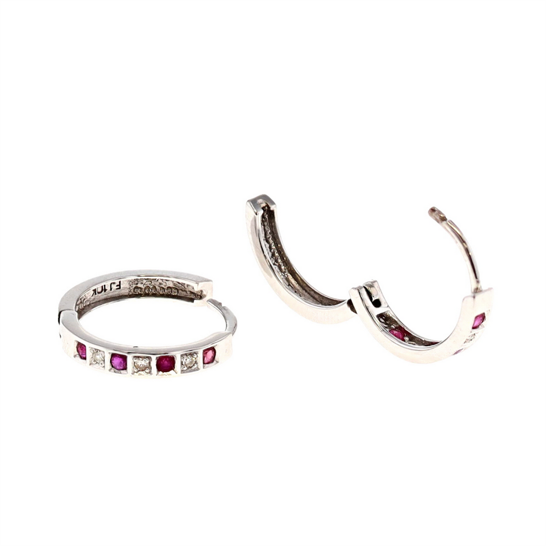 10KT White Gold Ruby and 0.03ctw Diamond Hoop Earrings