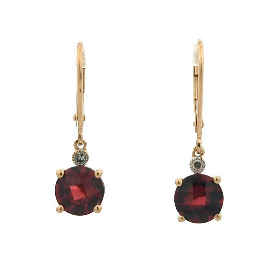 14KT Yellow Gold Garnet and 0.03ctw Drop Earrings