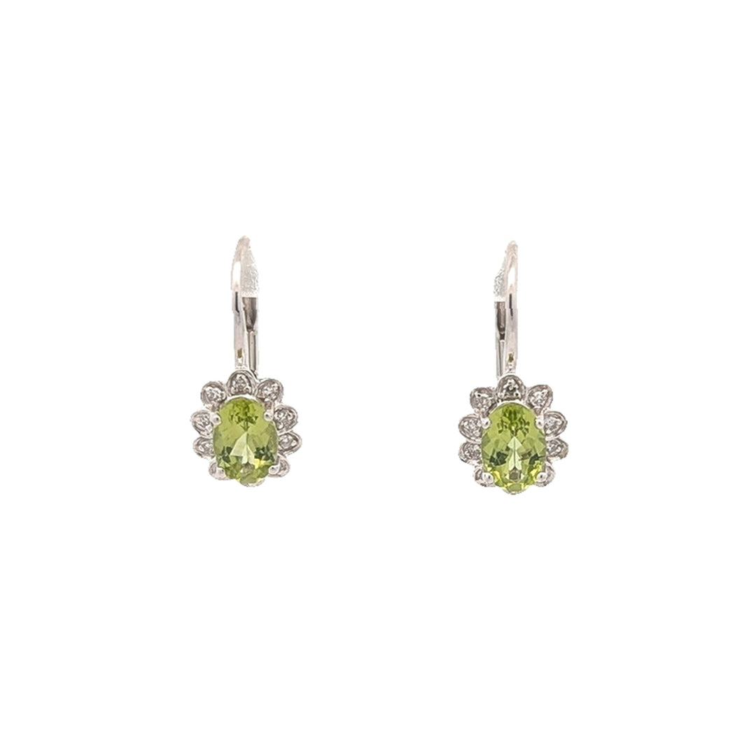 10KT White Gold Peridot and 0.08ctw Diamond Drop Earrings
